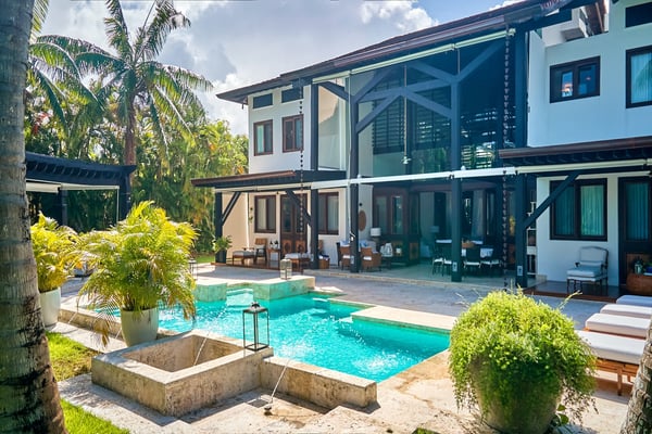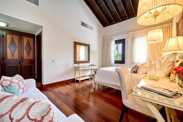 All guests must register with the Casa de Campo Concierge office, and for a small daily fee ($30 per adult per night & $15 per child per night), are granted access to resort areas and amenities. Casa de Campo Resort facilities and amenities include golf courses ($), the fitness centre ($), racquet center ($), restaurants ($) and bars ($). Contact Rental Escapes for more information about pricing. Welcome to Casa Adri, an elegant four-bedroom boutique villa that combines sophistication with comfort. Perfectly situated within walking distance of the Casa de Campo Racquet Center and just minutes from the shooting center, this villa is an ideal retreat for families or couples seeking a serene escape. Casa Adri’s thoughtfully designed spaces include a luxurious master suite, beautifully appointed guest bedrooms, and a modern kitchen that invites culinary creativity. Outside, the villa’s serene pool, lush garden, and charming gazebo create the perfect setting for relaxation and memorable outdoor gatherings. The BBQ area completes the experience, making Casa Adri a haven for those who value both elegance and leisure.