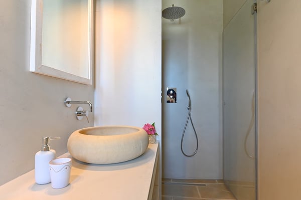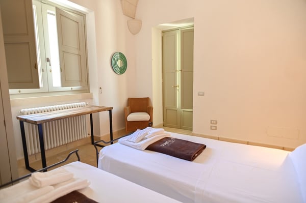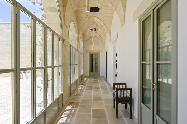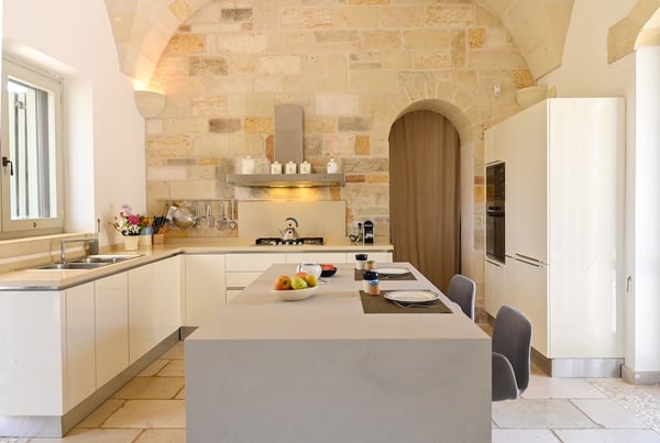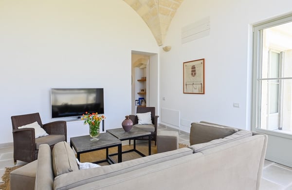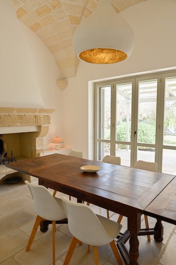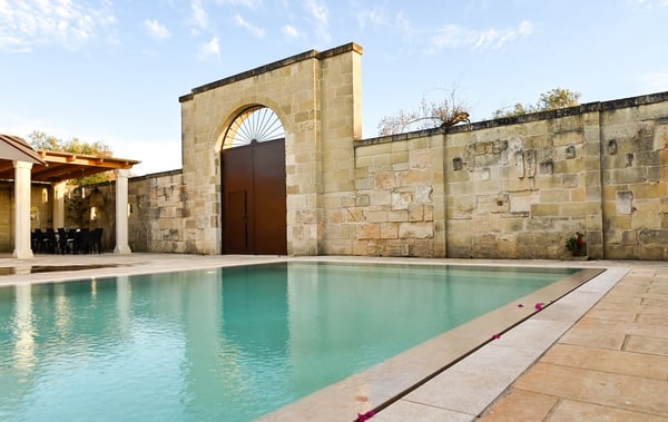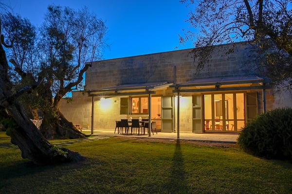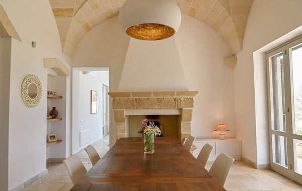 Beautiful masseria a few km from the sandy beaches of the Adriatic coast near Otranto, Masseria Piccolo Trullo is a recently built rural residence finely furnished in order to perfectly combine style and modern design and with elements and materials typical of the Salento tradition. The structure has recently undergone an extension and a restyle work by the Lecce architect Raffaele Centonze. Crossing the entrance gate you immediately immerse yourself in more than two hectares of ancient olive grove; near the house there are several spaces to relax and eat al fresco thanks to two shaded areas equipped with tables, chairs, sofas and armchairs. In the internal courtyard there is a heatable 10x5m infinity pool (pool heating is on request at an extra cost). Private tennis court, regular measures. CIN: IT075035C200039514