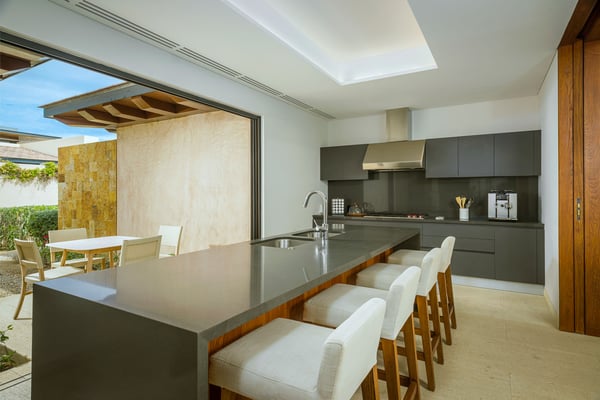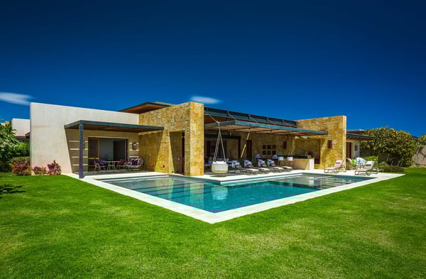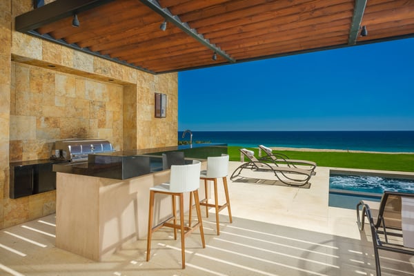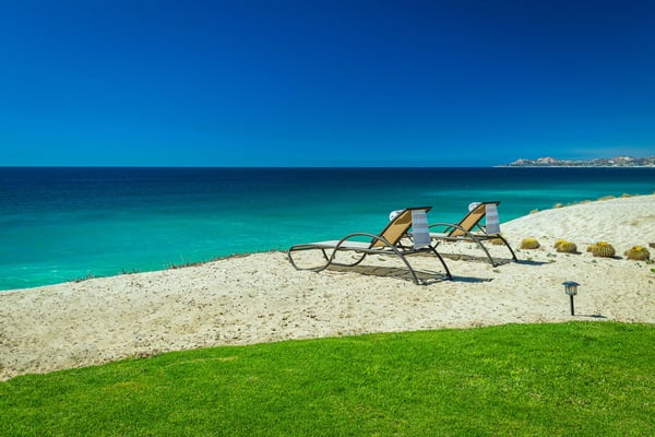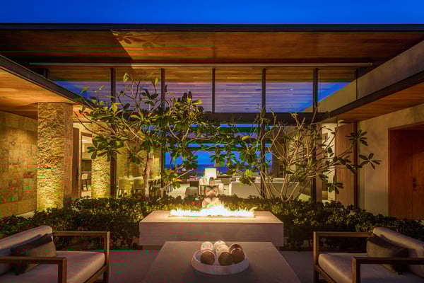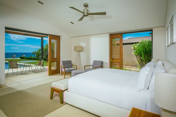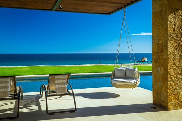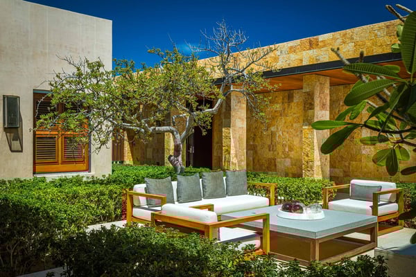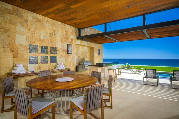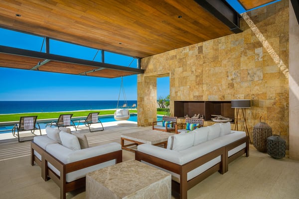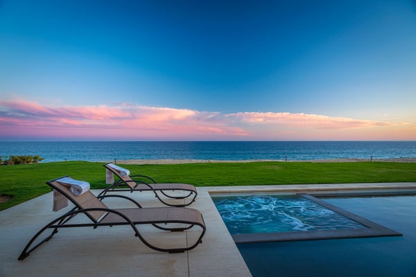 Mere steps from the sand and water, West Enclave 4 was designed for a truly upscale, beachfront experience in the exclusive Puerto Los Cabos community of Los Cabos. The desert contemporary style home almost becomes part of the natural landscape itself, as it incorporates the same hues of its surroundings, while also elevating guests to an entirely new level of luxury. The five-bedroom, 6.5-bath home can accommodate up to 11 guests, as it sits right on the beachfront, but also manages to deliver an almost private experience in one of the region's most celebrated master-planned communities. The rolling blue waves of the Sea of Cortez are the focal point of the outdoor space, as the waterfront beckons visitors to the soft sand and virtually endless views. Eight deck loungers sit alongside a heated swimming pool and a Jacuzzi, as guests have the option of soaking up the full afternoon sun or relaxing under full shade within the expansive deck. The space adds a gas grill, an outdoor wet bar with counter seating, and an outdoor table for al fresco dining. The space also includes an outdoor stereo system, and extends with a full outdoor living room, including comfortable seating. As well, you'll find a fire pit with additional seating almost right on the sand. It's almost impossible to distinguish the indoor space from the outdoor space, as the home transitions seamlessly from room to room, continuously blending outdoor living space with indoor space as you move from the outdoor terrace to the living room, to the interior courtyard. The home's main living room is graciously tucked away between massive glass doors on either side, leading in one direction to the rolling waves, and the other direction to a serene, almost Zen-like courtyard with additional seating and a fire feature. Even some of the five private bedrooms open to outdoor space, as guests wake up to the peacefulness of rolling waves and the nearby beachfront. The spa-like baths bring in the luxury of large soaking tubs and outdoor showers, as once again, the home effortlessly incorporates indoor/outdoor space into one. The home additionally adds in gourmet kitchen with a wine fridge, plus a main living room and an indoor dining table with space for ten. Directly overlooking the Sea of Cortez, West Enclave is part of the sophisticated and private RC Reserve Residences, close to the famed RCZ hotel, world-class golf, and a marina. Staying in the gated community means being close to some of the area's best amenities, whether you enjoy spending your time in the luxury of this private home, or out enjoying some of the region's top outdoor adventures.