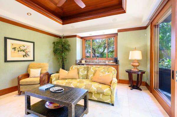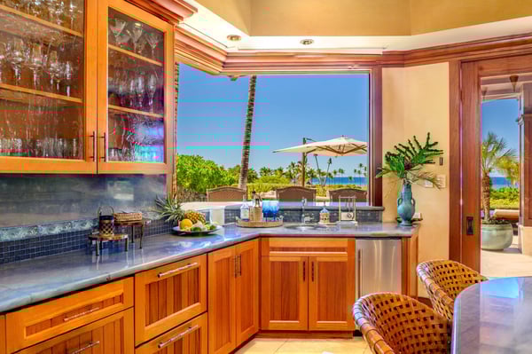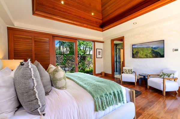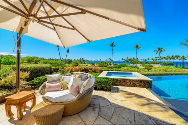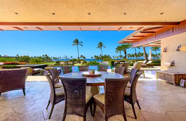 Guests of Hale Pono Kai can enjoy access to Francis H I'i Brown Golf Course, Mauna Lani Racquet Club, Mauna Lani Spa, Mauna Lani Beach Club, local restaurants, and shopping. Encompassing nearly 5,000 square feet, this luxurious villa boasts four bedrooms and five and a half baths with an additional sitting room that doubles as a fifth bedroom with a pullout sofa. Combined with the spacious Media Room Suite, there is abundant space for privacy, relaxation, and entertainment. The layout has been thoughtfully designed to optimize comfort and flexibility, ensuring that every guest feels right at home. The outdoor lanais beckon you to unwind, whether you’re soaking up the sun from the beautiful infinity edge pool and spa, or enjoying stunning panoramic ocean views from the expansive lanais. Imagine lounging on the pool deck, drink in hand, taking in the breathtaking vistas of the Pacific Ocean, or a short walk or drive to the nearby beaches and hotels. Your villa is located within the exclusive, gated enclave of Pauoa Beach, which is centrally located on the ocean between two luxury hotels, the newly opened and fully renovated Mauna Lani Auberge Resorts Collection and the classic Fairmont Orchid. Enjoy adjacent gourmet grocery, shops, restaurants, spa, tennis, and 36 holes of championship golf. The meticulous landscaping and serene courtyard, featuring a captivating koi pond, set the stage for a tranquil ambiance. Upon entering, you'll be greeted by vaulted ceilings that create an open and airy feel, complemented by carefully selected stone and hardwood floors that exude both elegance and warmth. The chef's dream kitchen boasts mahogany cabinets and granite countertops, blending beauty with functionality, whether you're hosting a dinner party or a casual family meal. The villa includes tropical outdoor showers in the four main suites, a private office, and an oversized media room, perfect for hosting movie nights or watching sports in style. The separate Ohana Suite with a comfortable sitting room and private bath guarantees privacy for all guests staying at the home. The environmentally friendly villa features PV panels, ensuring energy efficiency throughout your stay. GE: 029-002-9568-02 TA: 029-002-9568-02