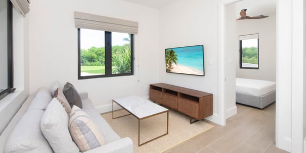 Welcome to Turtle Breeze, a breathtaking, Balinese-style 6-bedroom oceanfront estate nestled in West Bay just north of Seven Mile Beach. Designed with privacy in mind, Turtle Beach offers a micro-resort experience across 2 acres of lush tropical landscape bordered by the serene Barkers National Park. With no neighbors on either side, you’ll experience blissful seclusion and island tranquility throughout your stay. The villa’s outdoor spaces are nothing short of spectacular. The centerpiece is a massive pool deck complete with a sunken lounge, a swim-up bar, and a heated spa overlooking the backyard beach. Surrounding the pool, you’ll find ample shade provided by towering palm trees, a covered veranda, and a bird-cage tiki lounge perched over the water. The pool deck is flanked by an alfresco dining cabana offering a summer kitchen with a propane grill, wet bar, and a spacious outdoor dining table. Whether you’re enjoying a meal under the stars or a cookout by the beach, this setting is perfect for memorable gatherings. Ristorante Pappagallos, one of the Island’s oldest restaurants, is a two-minute walk away and sits on a natural saltwater lagoon with a bird sanctuary. All the 5-star dining options along Seven Mile Beach, plus an 18-hole golf course and the Island’s main shopping districts are all a short drive away—click the Map tab for details. Sun seekers will relish the villa’s private beachfront, ideal for long walks or snorkeling adventures right in your backyard. For adventure seekers, Turtle Breeze is conveniently close to ATV Cayman for land tours, Kite Surf Cayman for extreme thrills, and Pampered Ponies for horseback rides along the beach. SCUBA divers will find Indigo Divers just down the road in West Bay, where the whole family can also enjoy visiting the Cayman Turtle Center. Golf enthusiasts will be delighted by the estate’s mini golf course, complete with multiple tee boxes, sand traps, and a large putting area. Wedges, putters, and balls are provided, setting the stage for friendly competitions amidst the stunning surroundings. This expansive estate is thoughtfully designed across three distinct structures: a 2-story, 3-bedroom main villa with a detached 1-bedroom poolhouse, a carriage suite over the detached garage, and a 1-bedroom guesthouse with a den and kitchenette. Together, these accommodations comfortably sleep up to 14 guests, or 12 adults maximum, making Turtle Breeze the perfect choice for large families or groups seeking a private and luxurious escape. Beach Notes The beach behind the Turtle Breeze estate is soft sand but with limited barefoot entry into the reef-protected, marine environment. We do have some soft grasses & corals in the water to provide a safe harbor to teeming fish life. Please wear snorkel fins or foot protection when fish-watching. The sandy beach is sloped to provide privacy around the pool area from the rare passersby but also provides plenty of room for throwing a frisbee, or football, sunbathing, or taking walks east or west. Kiteboarding and horseback riding vendors are within a short walk. General Grand Cayman Beach Notes All beaches in Grand Cayman are technically public since the Crown owns up to the high water mark. The shoreline quality behind your property may vary slightly from the images on our website due to shifting tides and weather patterns. The next-door beach is also always available for your use. Ocean Debris & Sargassum Seaweed Beaches in Grand Cayman may also experience floating ocean debris and sargassum weed seasonally. Sargassum is a harmless floating seaweed that has increased over the summer months. The owners make efforts to remove heavy sargassum and will have the beach raked before your arrival. We try our best to work around Mother Nature.
