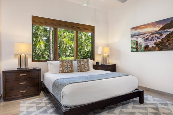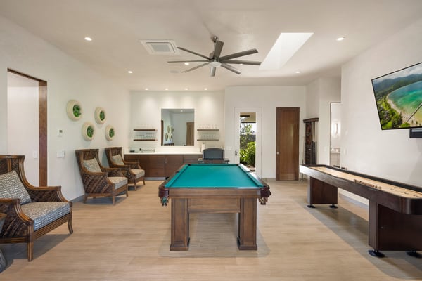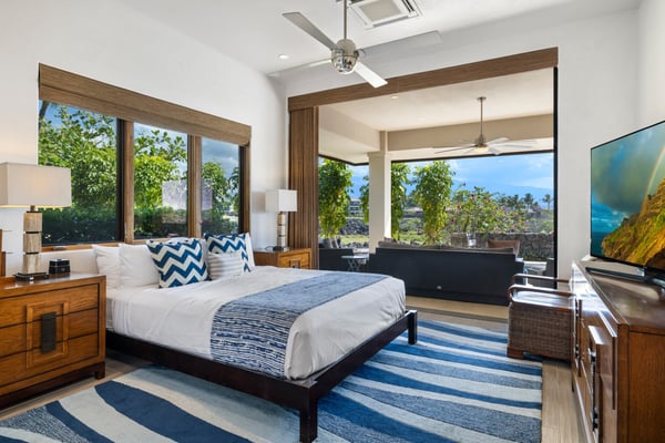 All guests staying at Ke Anu Nui Estate have access to the Mauna Lani Sports & Fitness Club The Kanini Estate is a recently constructed, tastefully furnished luxury villa in Waikoloa's premier oceanfront community of "Naupaka at Waikoloa." The Estate is located within walking distance of The Kings’ Shops and the Queens’ Marketplace, world-class golf, and the beautiful beach at Anaeho'omalu Bay as well as the Lava Lava Beach Club. The Kanini Estate offers all the resort amenities one could hope for. Built with the highest quality fixtures and finishes, this contemporary home offers a beautiful setting overlooking the protected Waikoloa Anchialine Ponds with stunning views to the ocean, sunsets, and beyond. The home offers a full gym and game room, with high-speed internet available throughout. The upper level offers a secondary entertaining area with a covered lanai and amazing panoramic views. A spacious outdoor pool and spa, dining area, BBQ, bar, fire pit, and lush yard space offer outdoor living at its best. STVR: 19-375717 GE/TAT: 135-687-5264-01
