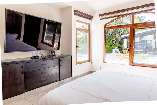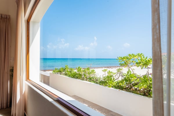 Please note that beach conditions are subject to natural changes caused by seasonal tides and erosion, which may affect the size, accessibility, and appearance of the beachfront. Nestled on the sun-kissed shores of Playa del Carmen, Villa Karlita offers the ultimate beachfront living experience. This charming villa combines the comfort of home with breathtaking views of the Caribbean Sea, making it the perfect choice for your next vacation. With three spacious bedrooms, each boasting king-size beds and personal TVs, Villa Karlita ensures a restful retreat for every guest. The villa features two modern bathrooms, blending convenience with a touch of luxury for your seaside stay. Food lovers will rejoice in the fully equipped kitchen, ideal for crafting delicious meals. For an added touch of luxury, opt for our private chef service (available at an extra charge) and enjoy your culinary delights in the villa’s outdoor dining area, where the ocean breeze and waves set a serene ambiance. Your private oasis awaits outside with a refreshing swimming pool and sun loungers for ultimate relaxation. The barbecue area, against the stunning backdrop of the ocean, elevates your outdoor dining experiences. Direct beach access invites you to immerse yourself in the beauty of Playa del Carmen’s beaches at your doorstep. Choose Villa Karlita for an unforgettable escape to luxury and tranquility in Playa del Carmen. Your ideal beach getaway begins here.