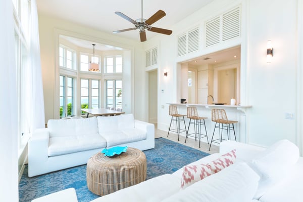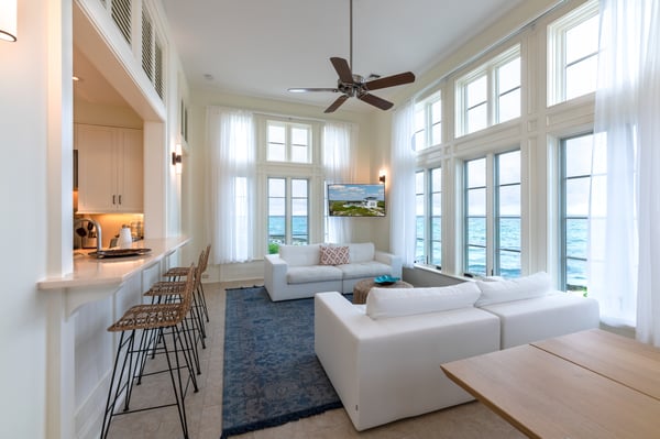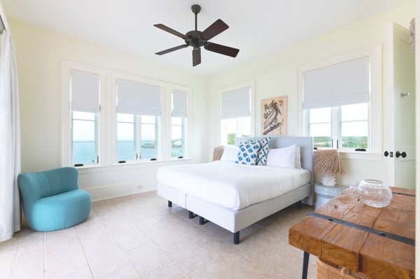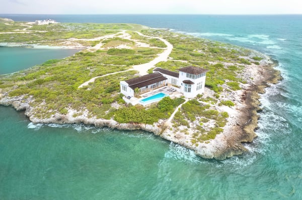 Land's End is an ideal villa for those seeking maximum privacy. Located on Whale Watchers Point, where the Atlantic Ocean meets the Caribbean Sea, this light-house-inspired villa is arguably the most unique home on the island. Secluded and serene, Land’s End offers several distinguishing experiences, including the ability to witness the magical migrations of Humpback whales during the winter months, without leaving ‘home’. It also offers a fully enclosed outdoor living area and the longest heated infinity pool on the cay. As well, guests can glimpse both sunrise and sunset from this luxury villa’s premium location on Ambergris Cay’s southernmost point. The primary bedroom is located on the second floor, at the top of a winding staircase and features wraparound windows that showcase the ocean view. The second and third bedrooms are set alongside the pool and sundeck, and the fourth bedroom, which is set just off the kitchen, offers a private entrance and opens onto the sundeck. Lands’ End is a 5-minute walk from Whale Watchers beach. Calico Restaurant, Monck Beach, Columbus Beach, and the tennis and pickleball courts are 15-20 minutes away by golf cart. The Club House is about a 10-minute golf cart ride. For families or friends travelling together may also consider Dream Pavilion, a luxury villa with a private chef, just 3-minutes from Land’s End by golf cart.