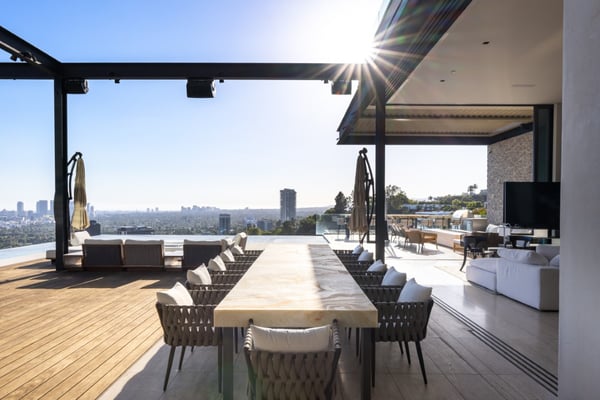 Perched to capture one of the Hollywood Hills' most breathtaking panoramic views, this sophisticated and elegant compound epitomizes luxury living at its finest. Encompassing an expansive 11,800 sqft of living space and surrounded by explosive views spanning from Downtown Los Angeles to the Pacific Ocean, the estate boasts 6 bedrooms, 8 bathrooms, and every world-class amenity desirable.