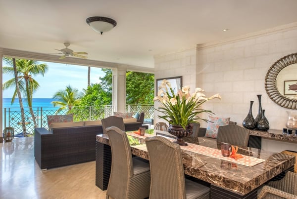 Smugglers Cove 3 is a luxury beachfront apartment on the world-famous West Coast of Barbados. Stay at this first floor, 3 bedroom beautifully decorated apartment for your Barbados holiday. The luxury apartment offers incredible sea views and direct access to a Paynes Bay Beach, one of the islands top beaches. The well appointed, air conditioned bedrooms are en suite and the spacious covered terrace offers a comfortable lounge, perfect for catching spectacular sunsets with a sundowner. The meticulous design of Smugglers Cove features Classic Caribbean Architecture in conjunction with bold dramatic pieces and every modern convenience provides the best of both worlds. Extra perks include personal loungers set up by Smuggler Cove beach butlers daily as well as a lovely cook/housekeeper to look after your every need and to prepare breakfast as well as a light lunch during your stay. Smugglers Cove provides 24 hours security and a communal pool as well as sun deck in the gardens. Restaurants, nightlife, shops, spas and golf on the Platinum coast of the island are also nearby.