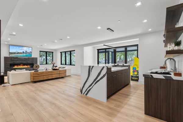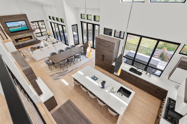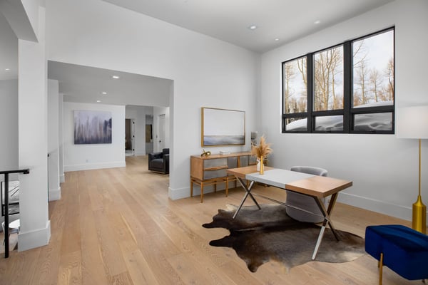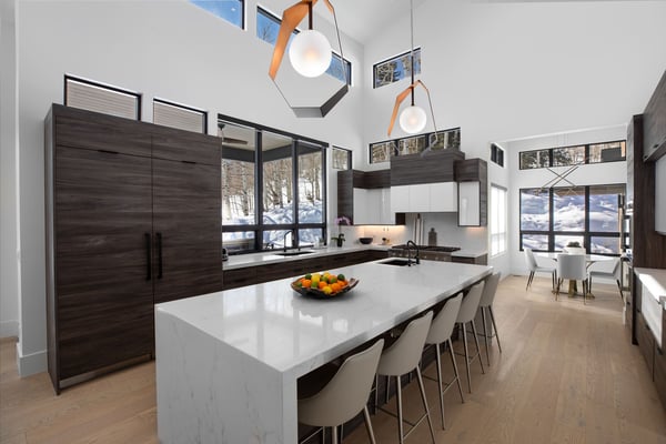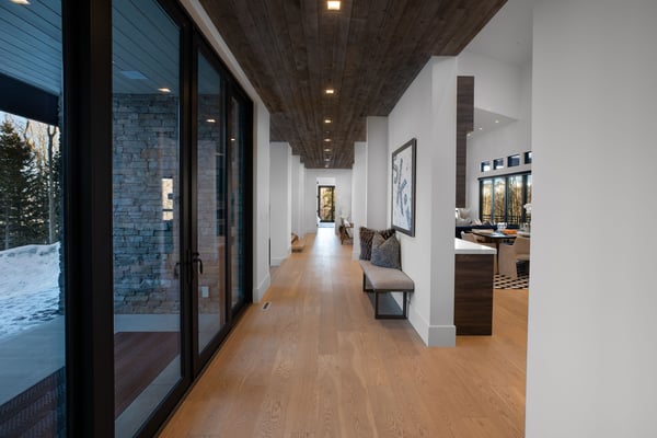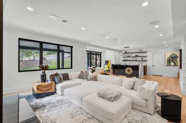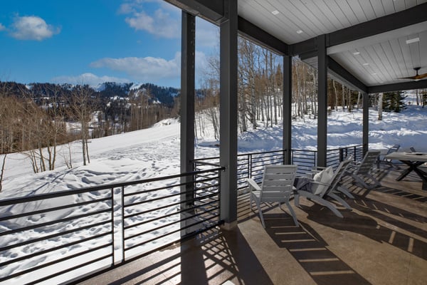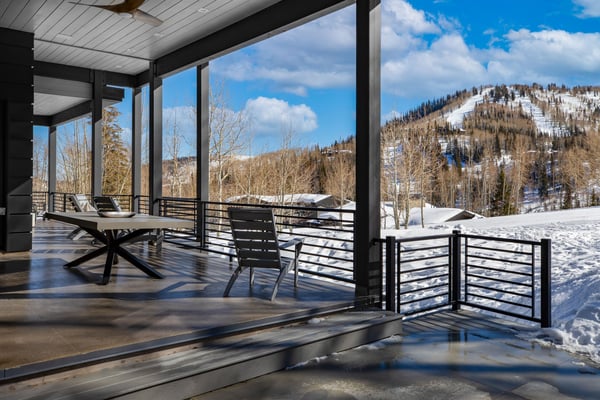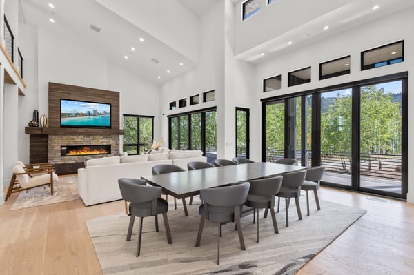 The Utah mountains have long captivated travelers with their stunning blend of vast canyons and towering summits. Each season brings its own unique charm, inviting adventurers and nature lovers to experience the breathtaking beauty of the Alpine landscape. Nestled within the guard-gated community of The Colony at White Pine Canyon, The Powder Prince offers a secluded five-acre retreat, perfect for relaxation and renewal. Winter in Utah brings what many call the "greatest snow on earth," along with the thrill of world-class skiing for all levels. The Colony, a private guard-gated enclave, is ideally situated to access the extensive offerings of Park City Mountain. With 41 lifts spanning over 7,000 acres, the Park City destination boasts 346 runs, 13 bowls, 8 terrain parks, a superpipe, and a mini pipe. The Colony encompasses more than half of the terrain at Canyons Village, and the high-speed Quicksilver Gondola effortlessly transports skiers across the massive resort. Fresh powder and untouched tracks are just steps away from The Powder Prince property, ensuring an unforgettable start to every day on the slopes. After an exhilarating day exploring the great outdoors, warm up by the fire and prepare in the ski room before heading straight out for a beginner’s lesson or an adventurous powder run. And while winter is magical, the other seasons bring their own wonders, with experiences you won’t want to miss. The Powder Prince design teams were commissioned to craft an inviting contemporary space that harmonizes with its natural surroundings. Thoughtfully placed windows frame picturesque views from every room, while expansive glass walls invite you to enjoy the stunning scenery from covered porches and verandas. The home’s open floor plan flows seamlessly from interior gathering spaces to outdoor entertainment areas, creating the perfect balance between lively social spaces and intimate, cozy corners.
