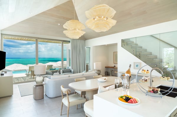 The Ocean View Three-Bedroom Reserve Villa is your secluded retreat, ideally situated for indulging in mesmerizing ocean views and the invigorating mists of the island breeze. Spanning two stories, this sanctuary melds the homely comforts with the opulent indulgences of a resort. Submerge yourself in tranquillity with your own private swimming pool and outdoor living areas, soaking in the natural “vitamin sea” of the stunningly beautiful Turks and Caicos Islands. Each of the three sumptuous bedrooms is adorned with a California King Bed, promising a peaceful slumber, and boasts a private bathroom complete with both a shower and a separate standalone soaking tub for the pinnacle of relaxation. The villa features a spacious living and dining area, enhanced with a queen pull-out sleeper sofa, ensuring plenty of room for both leisure and entertainment. Savour a personally crafted meal in the fully equipped kitchen, and relish it in the seclusion and comfort of your expansive living and dining space. This villa is more than a place to stay; it’s an escape where every instant is steeped in luxury, framed by the awe-inspiring vistas of the ocean.