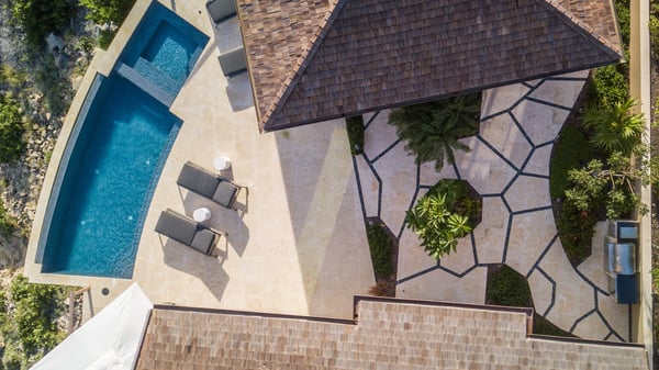 Sitting on the striking cliffs of Oil Nut Bay’s Atlantic Ridge, Hummingbird Villa is an oasis of pure opulence. This multilevel, contemporary home features four lavish bedrooms, all ensuite – three under one roof with a fourth pod-style king suite for ultimate privacy. The gourmet kitchen is equipped with all the latest modern conveniences and the expansive great room boasts uninterrupted views of the deep blue Caribbean Sea. Floor to ceiling glass doors open onto a glorious outdoor deck with plenty of space to soak in the sun or relax in the shade. Grill, dine and entertain on the expansive deck or enjoy a movie night in the media room. This luxurious island vacation home is orientated towards the stunning infinity pool with an adjacent hot tub.