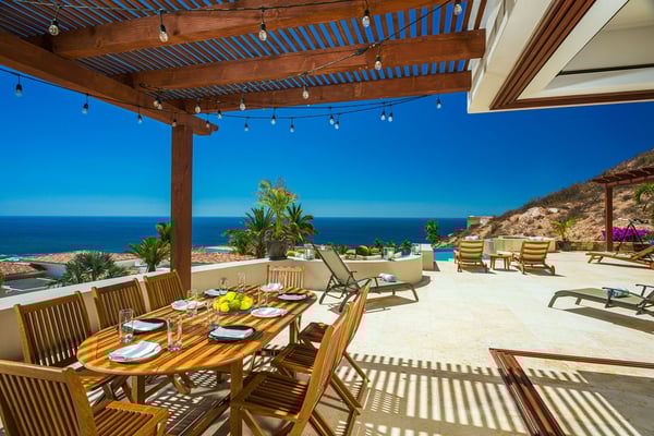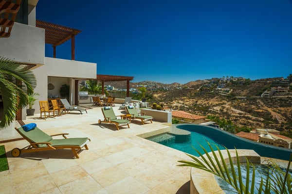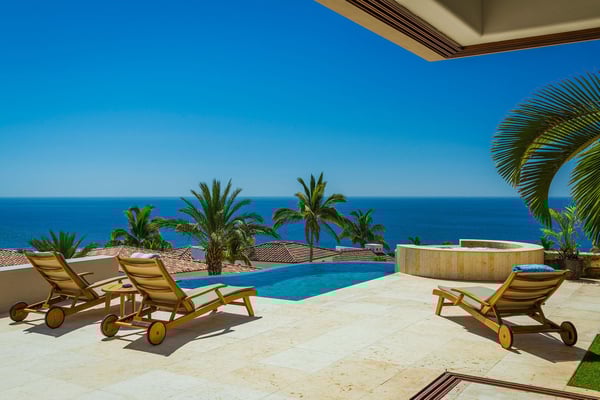 Introducing an exquisite property located in the prestigious gated community of Cabo Colorado in San Jose del Cabo, just a short stroll from the beach. This luxurious residence boasts 4 spacious bedrooms. The expansive terrace features a dining table, perfect for al fresco meals, and overlooks a stunning infinity pool and jacuzzi. The well-appointed kitchen and large dining table are ideal for hosting gatherings. Experience the ultimate in comfort and sophistication in this exceptional home. Each bedroom has been designed to offer an exquisite experience. All the rooms have a King bed, en-suite bathroom, closet and balcony or terrace access. The primary suite is strategically located on the main floor with 2 vanities and a hot tub. Cabo Colorado is very well located, with access to a private beach and hospitals, supermarket, premier restaurants in a range less than 5 minutes driving.