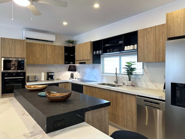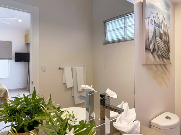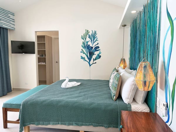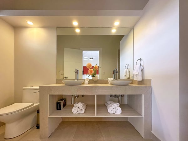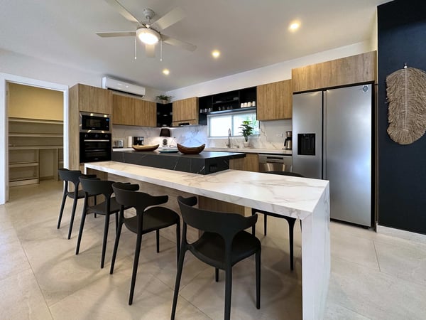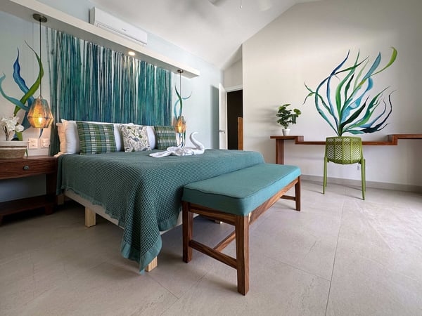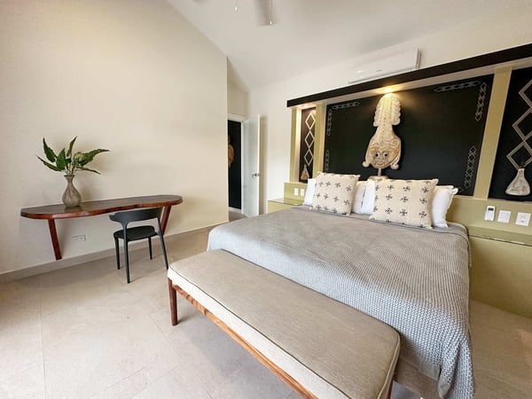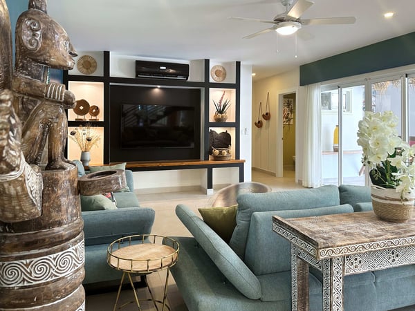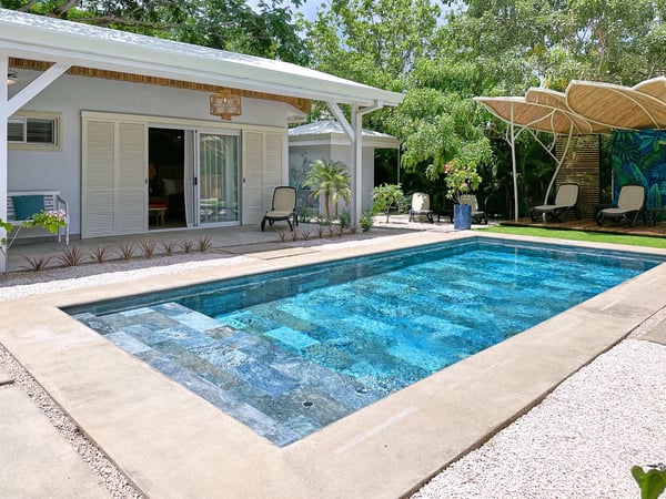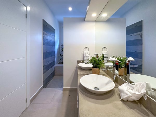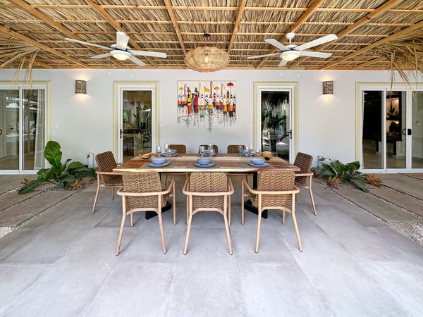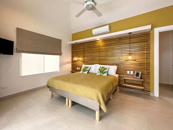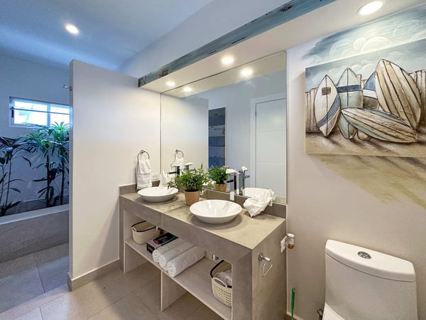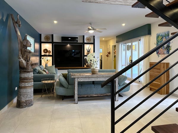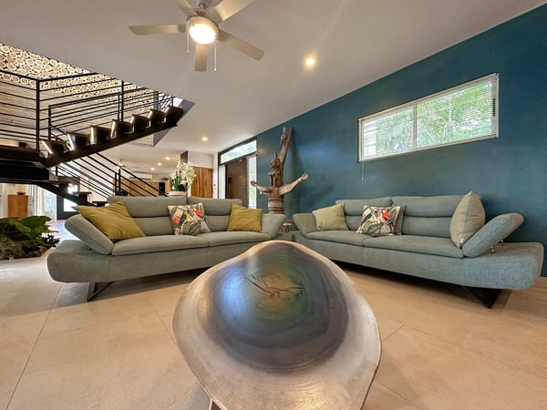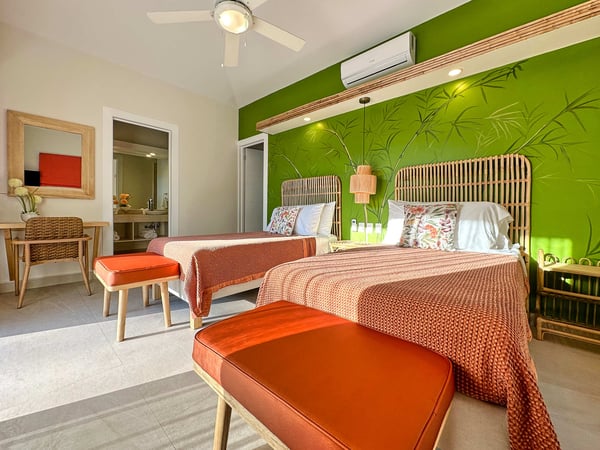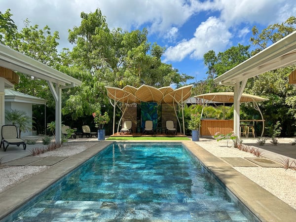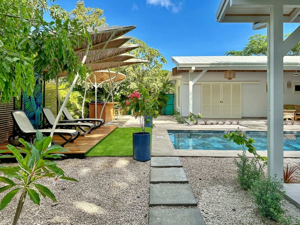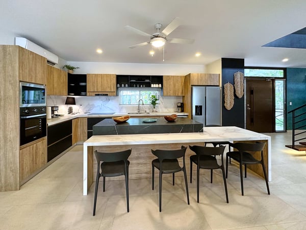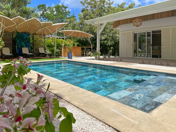 Experience a luxurious stay at Casa Karibe, an exclusive Caribbean design villa, located only 800 meters from the beautiful beaches of Tamarindo. Accommodating up to 10 people, the villa offers spacious bedrooms overlooking the lush garden and pool, a fully equipped kitchen and outdoor spaces perfect for rest and relaxation. Ideal for families and friends who wish to immerse themselves in the authentic essence of the ‘Pura Vida’ in Costa Rica. Casa Karibe is a luxurious Caribbean villa of more than 500 m², designed by a renowned decorator. Located in a private and secure residence, this property offers a unique experience in Tamarindo, just 800 meters from the beaches. Upon entering, you will find a large and bright space that connects to the fully equipped kitchen, a TV room and stunning views of the pool and garden. In the outdoor area, a large table invites you to enjoy alfresco meals, accompanied by an outdoor lounge perfect for relaxing. The first floor also houses three master bedrooms, each with dressing room, separate entrance and private terrace overlooking the pool. Upstairs, two spacious 50 m² master suites feature king-size beds, dressing rooms and private terraces with suspended swings and lounging areas. The villa is surrounded by a lush tropical garden and a swimming pool with Pool Deck area, plus an equipped bar and outdoor shower for convenience. The villa has a closed garage for one car and a carport for two vehicles with direct access to the house. Casa Karibe is the perfect place to enjoy a luxurious stay, either with family or friends. With capacity for 10 people, come and live the authentic “Pura Vida” in the heart of Costa Rica.