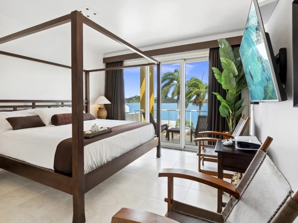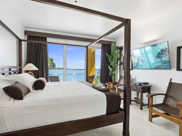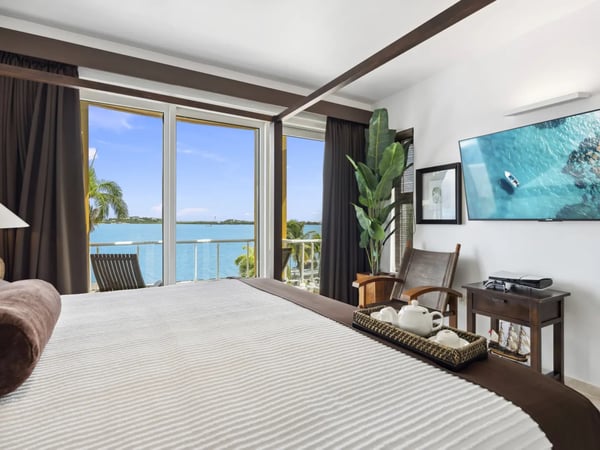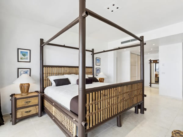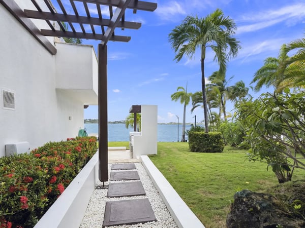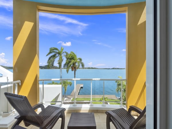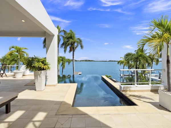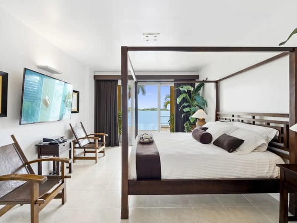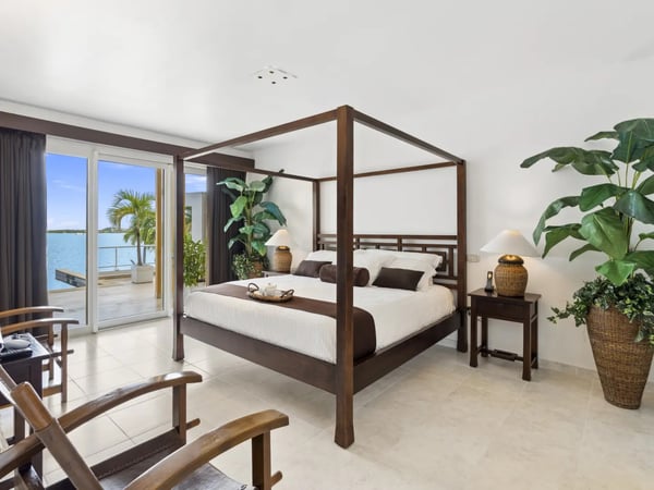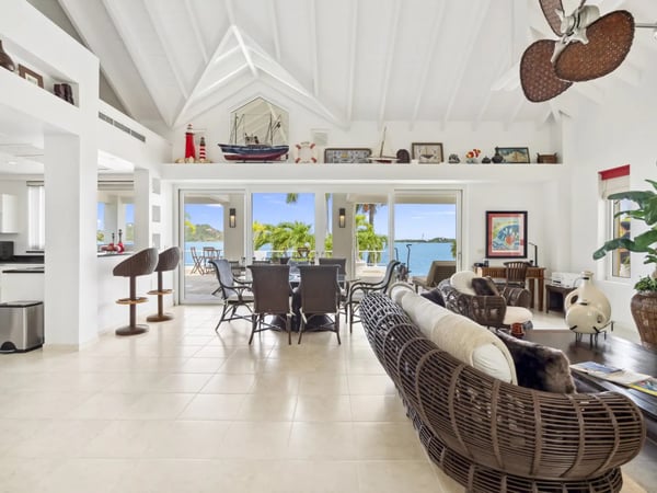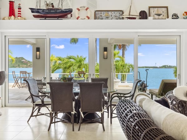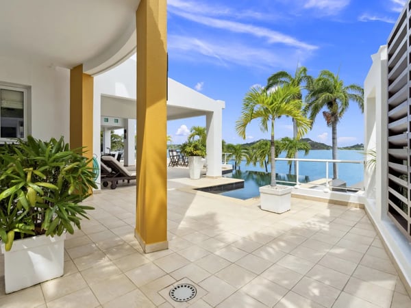 This elegant and exceptionally spacious five-bedroom, 5 1/2-bathroom waterfront villa comes with a private boat slip at the bottom of the garden. The generously sized living areas open onto extended decks that boast breathtaking views of the French Lowlands, and the neighbouring island of Anguilla. The primary bathroom Jacuzzi tub defines true tranquillity as it looks out onto its own private garden. The infinity-edge pool gives an impression of inclusion with the deep blue of the Lagoon, which is just steps from your back lawn. Nestled in the hillside of the Dutch Lowlands, Villa 3 offers 24-hour gated security for the optimum in privacy and safety. Just five short minutes to the island’s most exciting nightlife area, the Maho Beach Resort & Casino, and only 15 minutes to Marigot, the shopping capital of French St. Martin, Villa 3 ’s central location makes it ideal for the perfect home.
