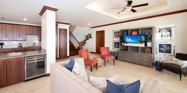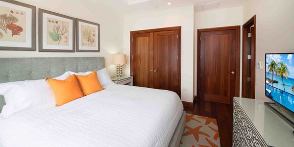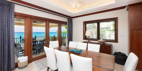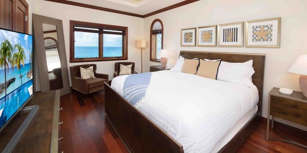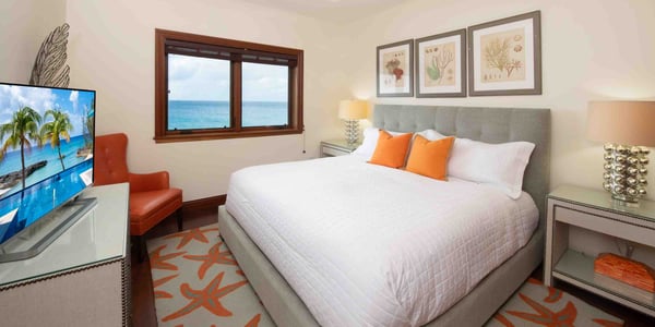 Welcome to Casa Luna, a luxurious seaside residential resort nestled along the coastline just south of Seven Mile Beach. Inspired by Tuscan architecture, Casa Luna blends modern luxury living with award-winning landscaping design with onsite horticulturist to create a secluded Caribbean oasis to call your very own. Casa Luna appeals to travelers who are considering a stand-alone luxury villa but desire more resort amenities, and those who are weighing the luxury and beach quality of a Seven Mile Beach condo but opt for additional privacy and fewer tourists. Casa Luna #14 is an upscale 4-bedroom oceanfront option to experience the best of both worlds--a spacious private residence with the convenience and resort amenities of a luxury oceanfront condo. This multi-level residence offers an open-concept design, with bedroom suites on the top and ground levels. The living, dining, and kitchen are located on the main level and open onto a private ocean veranda with lounging areas. Three of the four kin bedroom suites have breathtaking direct ocean views. The fourth bedroom has a beautiful Juliet balcony with a garden and partial sea views. The floor plan offers a great fit for both families, multiple couples, and executives. The spacious 5,032 square feet of living space offers a rare great value as well as room to spread out to make yourself feel at home. Only 5 of the resort’s 18 villas are currently available for short-term rental. Exclusive to villa owners and guests, the gated resort's elevated infinity pool + heated spa, fitness center, and barefoot sandy cove offer plenty of private seating and chaise lounges to enjoy at the beach, by the pool, and on the private patio. Beach Notes Casa Luna's barefoot sandy beach is lined with palm trees and sun loungers. Exclusive only to the owners and guests at Casa Luna, the beach here is never overcrowded. Unusual for a barefoot beach in Grand Cayman is the ability to snorkel and actually see marine life. Fish require corals, grasses, and rocks in which to live (and these items are not pleasant to walk on). Instead of rocks and grasses, Casa Luna's protective ironshore cove provides a haven for marine life. The larger condo resorts on Seven Mile Beach lack any underwater habitat for marine life resulting in fewer schools of fish. Given the tides and currents, you will want to exercise caution when swimming outside the protected cove. General Grand Cayman Beach Notes All beaches in Grand Cayman are technically “public” since the Queen owns up to the high water mark. The shoreline quality behind your property may vary seasonally. Ocean Debris & Sargassum Seaweed Beaches in Grand Cayman may also experience floating ocean debris and sargassum weed seasonally. Sargassum is a generally harmless floating seaweed that has increased in frequency in recent years. Although sargassum is an unsightly nuisance, it is largely seasonal in the summer. The owners make efforts to remove heavy sargassum and have the beach raked prior to your arrival. We try our best to work around mother nature.