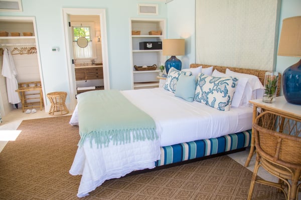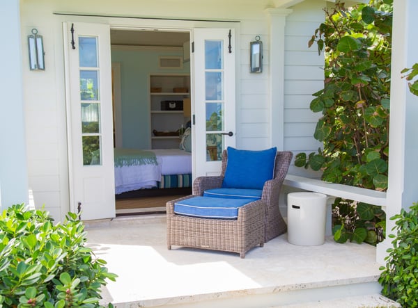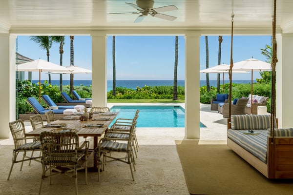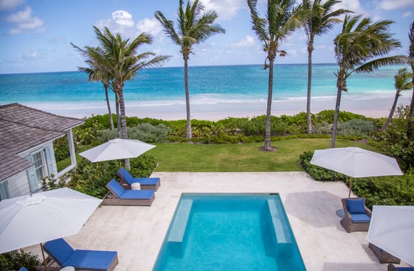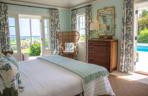 This exclusive four-bedroom beach getaway belongs to none other than the owner of The Dunmore Hotel. With designer interiors, and an adjoining cottage that houses the 4th bedroom, Sitting Pretty is an entertainer’s paradise revealing Harbour Island’s laid-back charm. The main house: 6,000 sq ft of fully air-conditioned living space with a full kitchen, washer/dryer, wet bar, powder room, dining area, family room and living room to unwind in. Oceanfront pool: Slated panel doors open onto an expansive furnished patio and a sparkling oceanfront pool with plenty of poolside loungers. The bedrooms: All four spacious bedrooms have king beds (one king converts into twin beds) with en-suite bathrooms and French doors, opening up to individual verandas.