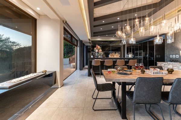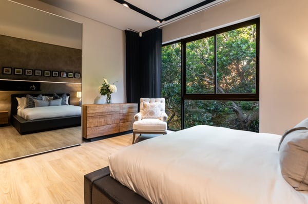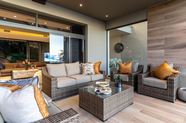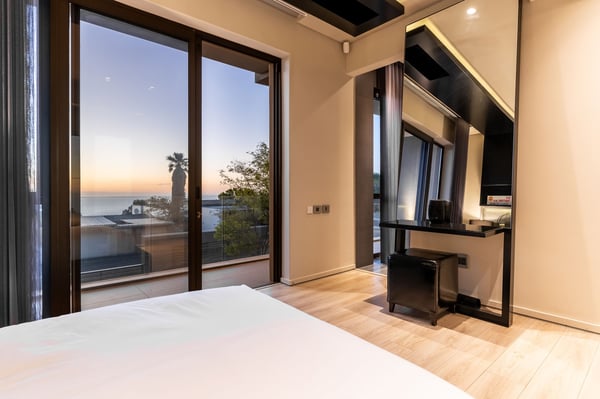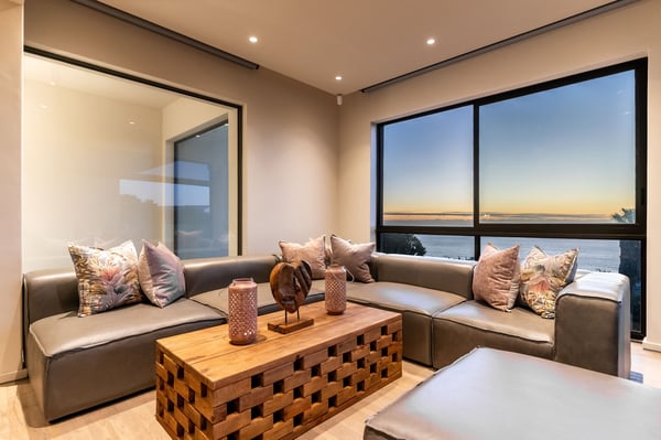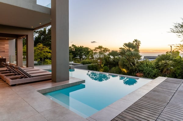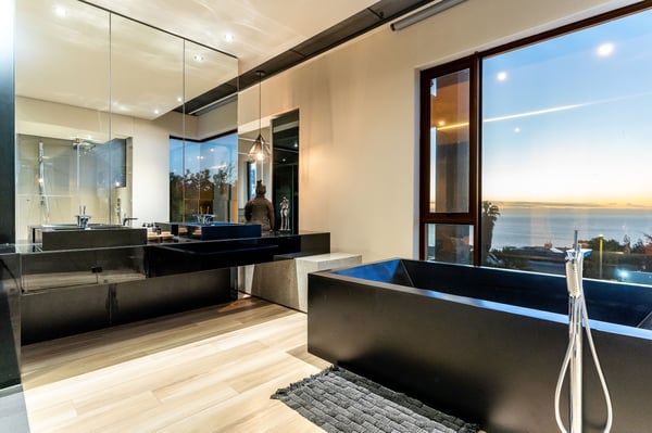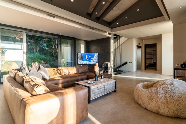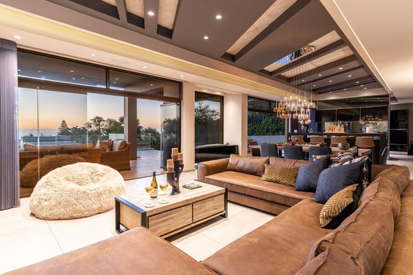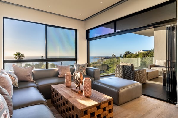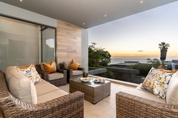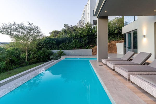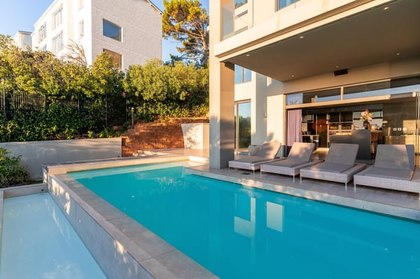 Nestled in the exclusive enclave of Camps Bay, Sapphire Seas is an exquisite 5-bedroom villa offering unparalleled luxury and breathtaking vistas of both the ocean and majestic mountains. Boasting a range of features designed to elevate your stay, from the private cinema room to the sleek elevator whisking you from ground level to the top floor, this residence is a haven of opulence. Step outside to discover the epitome of alfresco living, with a terrace adorned with chic outdoor lounge furniture, a separate wind-free BBQ area complete with a gas BBQ, and a sparkling swimming pool framed by panoramic views of the mountains and sea. Inside, the expansive lounge and dining area beckon with contemporary décor, plush seating arrangements, and striking artwork. Entertain in style at the 10-12-seater dining table or unwind in the private cinema room. A fully-equipped, state-of-the-art kitchen awaits culinary enthusiasts, complete with a scullery area and a separate laundry room. Ascend to the top level to find the master suite, a sanctuary of indulgence boasting a king-size bed, an en-suite bathroom with a walk-in shower and extra-large bathtub, a spacious walk-in closet, and a private balcony offering mesmerizing ocean views. Three additional bedrooms on this level offer queen-size beds and en-suite bathrooms. Two of the 3 bedrooms have access to a shared balcony with sweeping vistas. A fifth bedroom on the middle level provides privacy and comfort, featuring a queen-size bed, en-suite bathroom, and a private balcony overlooking the azure waters below. Perfectly situated, Camps Bay Beach, renowned restaurants, and boutique shops are just a short drive away, while the vibrant Cape Town City Centre is within easy reach, ensuring every desire is effortlessly fulfilled during your stay at this extraordinary villa.