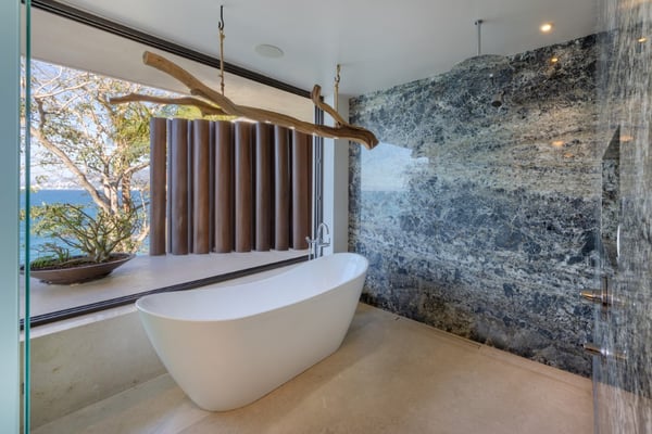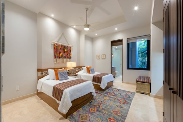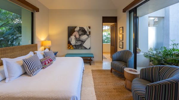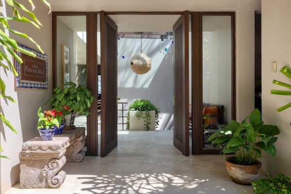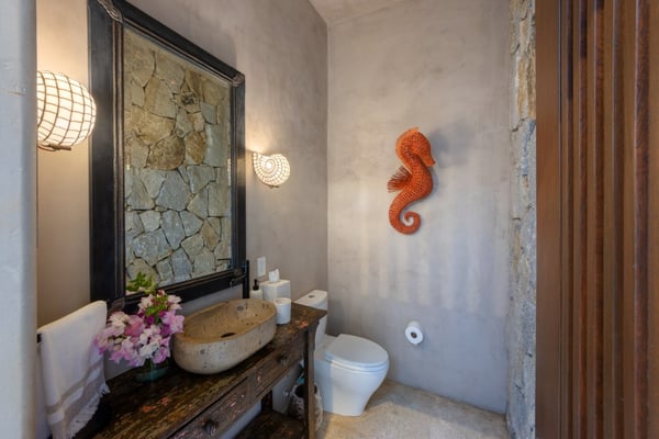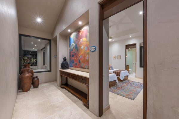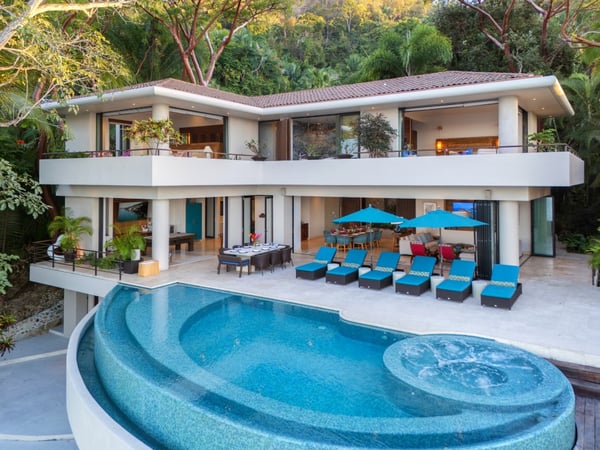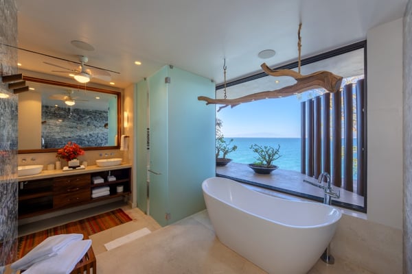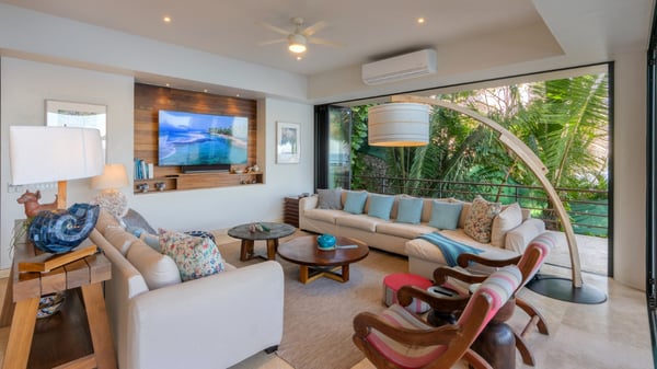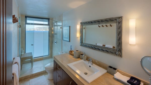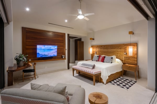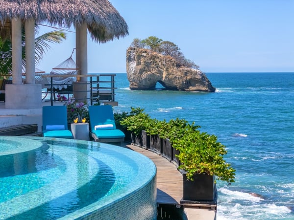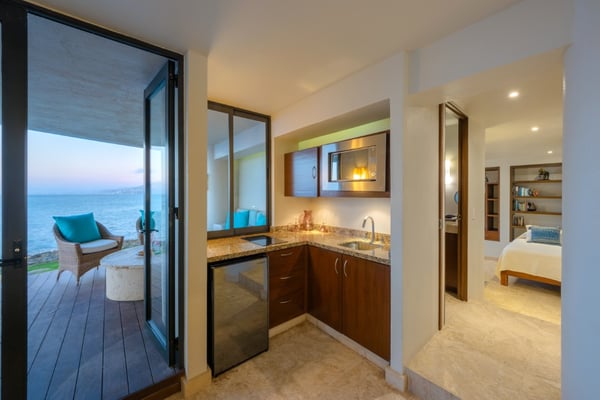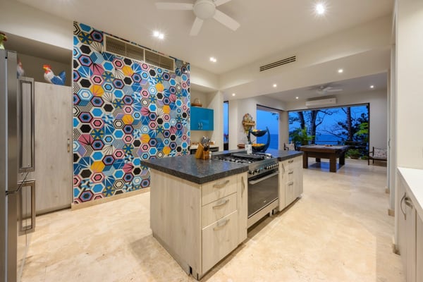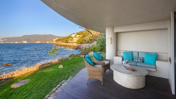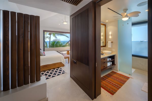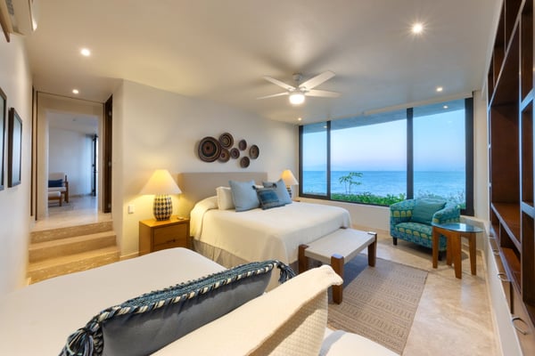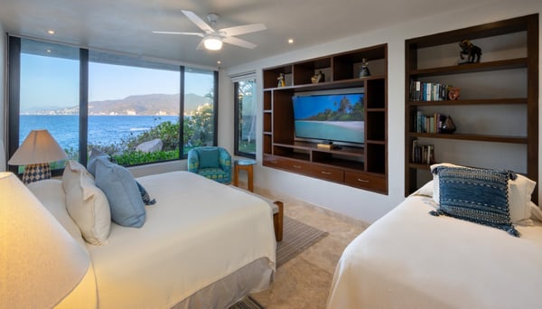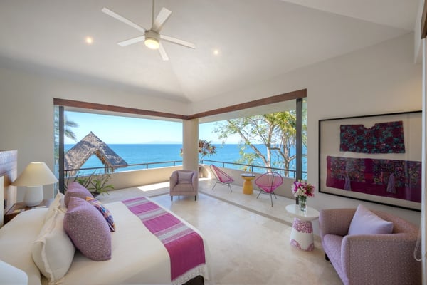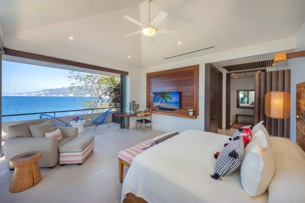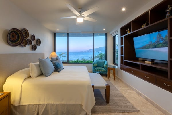 The sun of Puerto Vallarta shines above and the ocean falls gently below in Casa Peña del Mar. Located in Banderas Bay, with panoramic views of the Bay of Bandares and the iconic formations of Los Arcos, this luxury vacation rental is one of the six personalized villas in the exclusive Sierra del Mar in the community of Los Arcos. Completely updated with Modern sleek interior and exterior spaces and a private beach, the property is equally suitable for a relaxed family vacation or a warm weather getaway with friends. The name of the villa translates as "sea rock" and, in fact, you can enjoy the sun as it sets behind the distinctive “Los Arcos” from the row of sun loungers and the heated infinity pool and the jacuzzi on the terrace facing the sea. A palapa provides a breather in the shade of the sun, and a barbecue and an outdoor dining room invite you to stay outside until the afternoon. Of course, there is also a sound system, satellite television and a games room with a pool table and comfortable plush modern couches when its time to move inside. Your stay includes the preparation two meals a day (three can be arranged at a small additional fee) from the villa's chef, the services of other staff and access to the community beach club, the shared pool, the gym, the sauna and the steam room. The exterior spaces are connected to the interiors of the villa by glass walls, which can be folded back to create a perfect living room. Ocean breezes float over the living room, where a spacious section is accentuated by the traditional Otomi cushions and the formal dining room, with capacity for twelve people. The new fully equipped kitchen has a large breakfast bar and state of the art appliances. From the surroundings of the villa in the southern area of Puerto Vallarta, it is a 2 minute walk from the private beach that belongs to the Sierra del Mar in the community of Los Arcos, a 3 minute drive from Playa las Gemelas and fantastic snorkeling in the Los Arcos National Park, and a 10 minute drive from the cafes, shops and historic streets of the charming Romantic Zone of Puerto Vallarta.