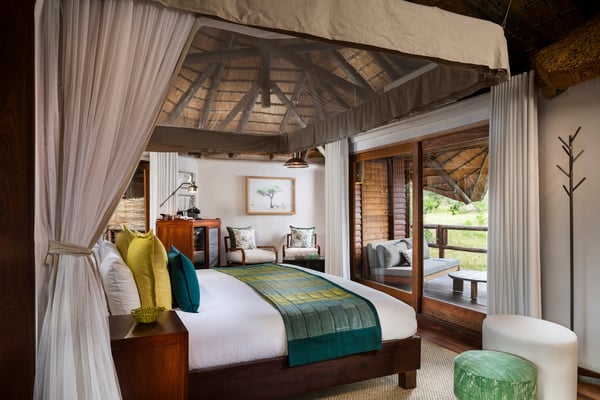 Ulusaba is Sir Richard Branson’s private game reserve in South Africa's Sabi Sand. Ulusaba has 20 rooms and suites spread over two lodges: Rock Lodge, including the beautiful Cliff Lodge, and Safari Lodge. The name Ulusaba means ‘place of little fear’, so named because the koppie, or hill, on which Rock Lodge sits provided the ancient Shangaan tribal warriors with the perfect lookout point. Safari Lodge fits snugly under a canopy of ancient trees on the edge of a dry riverbed. Some rooms are accessed by swing bridges and have views of passing animals on their way to the watering hole. Built in a sophisticated treehouse style, there are four River Rooms at Safari Lodge. All are spacious and private, with cozy seating areas and large terraces offering striking views of the riverbed or bush. These rooms are beautifully secluded and tucked between jackal berry trees, making them ideal for those celebrating or enjoying a romantic escape. Three of the River Rooms are accessible by a swing bridge and are a short walk from the main lodge.