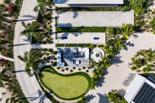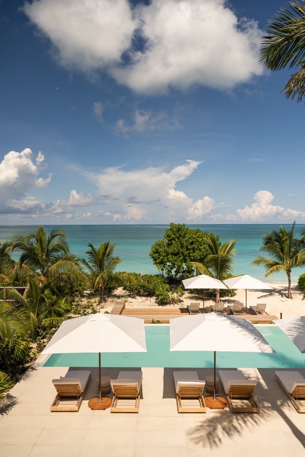 Located in the ultra-luxurious 5-acre Reserve, steps from Grace Bay beach. Villa 2 spans 15,141 square feet, of which 10,394 square feet are interior air-conditioned space. A total of 7 spacious ensuite bedrooms and 7.5 bathrooms, all located in the main house. The expansive ground floor of villa 2 features an open-plan living and dining room and a chef’s kitchen, complete with state-of-the-art appliances and a huge island, perfect for large family gatherings overlooking the great room. High ceilings with slim-framed, floor-to-ceiling glass offers outstanding views of Grace Bay beach. One garden-view king-bedded ensuite bedroom, media room with ping-pong table, card table, powder room, laundry room and office are also located on the ground floor. Located on the upper floor is the large ocean-view primary bedroom with an ensuite bathroom featuring a soaking tub, double vanity, and outdoor shower, plus a second additional outdoor shower on the terrace and wet bar, perfect for entertaining. 3 additional spacious king bedded ensuite bedrooms are located on the first floor, all have stunning ocean views and bathroom with outdoor shower. (2 of the 7 ensuite bedrooms can convert from a king set-up to 2-twin beds. Two large garden-view bunkrooms each with a queen-size bed and lower bunk are also located on the first floor, perfect for teens, each with its own ensuite bathroom. The 52’ rooftop terrace lounge offers panoramic views of Grace Bay beach and is the perfect gathering space, complete with ample plush seating and a wet bar for entertainment. Outdoors, features a covered terrace, outdoor kitchen, dining table, plush lounge seating, a 52’ infinity-edge pool, jacuzzi and sundeck perfect for year-round indoor/outdoor living and the best sunsets on the island.