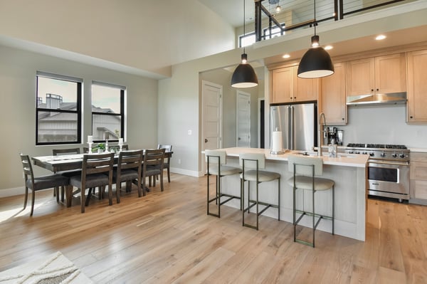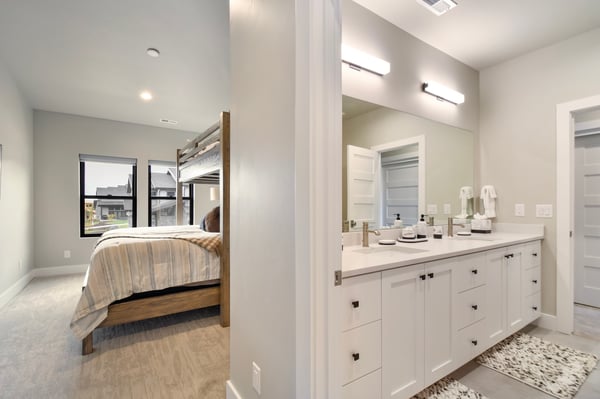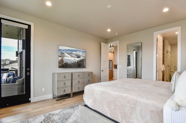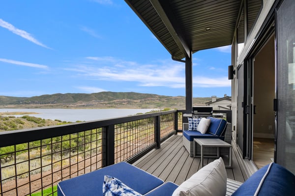 Ski Butlers offers you the best rental experience in the industry. No more lines. Ski Butlers is a full-service ski and snowboard company that delivers the equipment to you. Contact a villa specialist for more information. Perched near Jordanelle Reservoir, minutes from the Jordanelle Express Gondola, Mayflower Lakeside 942 promises an enchanting luxury getaway full of Park City adventure. This five-bedroom, 4.5-bathroom townhome sleeps up to 11 guests. Enjoy a host of year-round activities ranging from world-class skiing in the Winter to Summer activities like fishing, swimming, and hiking. After an exciting day, guests will love cozying up by the multiple gas fireplaces, playing a round of pool, or simply enjoying the gorgeous views. Guests enter this contemporary townhome on the second level, where a palette of pale wood and white walls creates a serene setting for relaxing. The stylish kitchen features quartz countertops, Viking appliances, and an open layout with a three-seat island/breakfast bar for easy entertaining. There’s plenty of room for dining with a table for eight to the side. A soaring stone-surround fireplace with a mounted TV invites guests to gather in the living space for chilly nights, drinking cocoa by the fire. On warmer days, barbecue or relax on the attached balcony while taking in the sweeping view of the sparkling reservoir waters below. Off the living area is the stunning primary bedroom with a king bed, Smart TV, private bathroom, and balcony access On the bottom level, a secondary living area designed for unwinding and indoor fun awaits. Revel in an evening of friendly competition at the pool table with a convenient wet bar along the wall. At the back of the room, an inviting seating area boasts a comfortable sectional, a gas fireplace, a TV, a high-top table for two, and glass doors leading to the patio. A guest bedroom with a king bed completes this floor.
