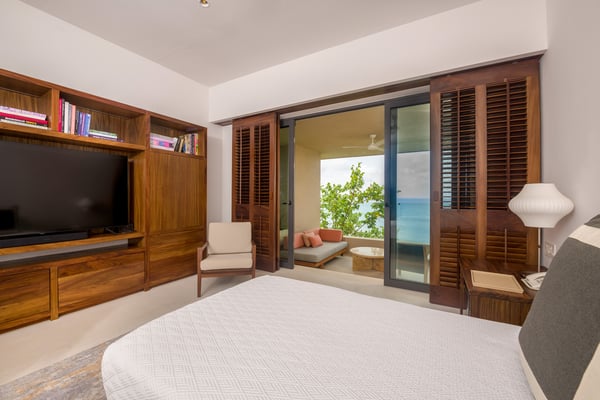 The Premier Golf Membership grants access to Pacifico Golf Course ($), Bahia Golf Course ($), the Tennis Centre ($), the Fitness Center ($), El Surf Club based on min. consumption fee ($), St.Regis Beach Club based on availability and min. consumption fee ($), Pacifico Beach Club, Sufí Ocean Club and Kupuri Beach Club. Contact one of our Villa Specialists for more information. Nearby construction may result in noise disturbances. For further details on how this might affect your stay, please reach out to a Rental Escapes villa specialist. Villa Cocó offers refined ocean views from its setting in the new Iyari community, perfect for groups of up to 8 guests. The thoughtfully designed layout features 4 spacious bedrooms, with one as an adaptable TV room upon request.