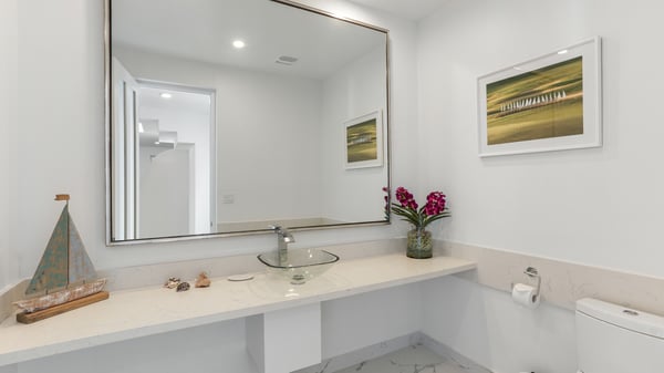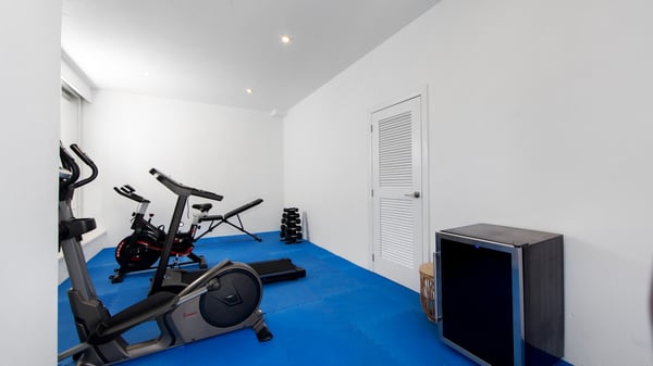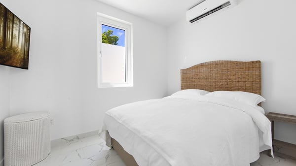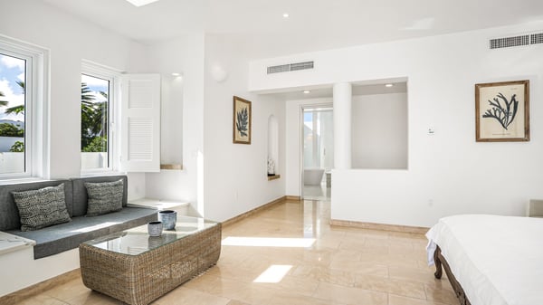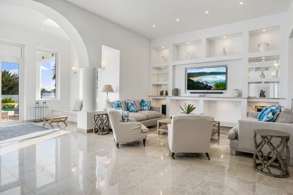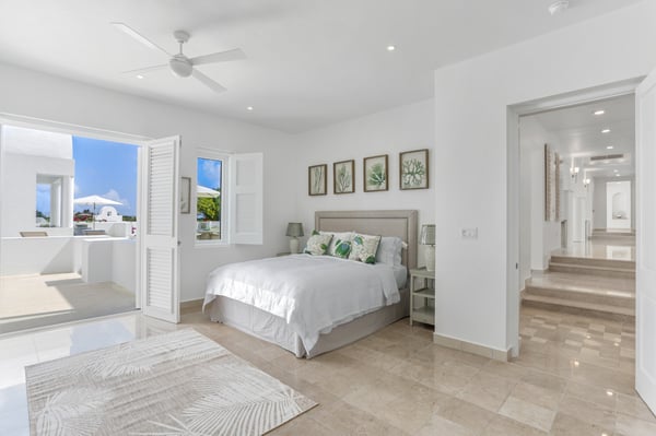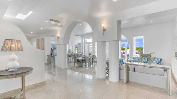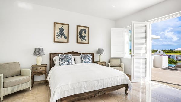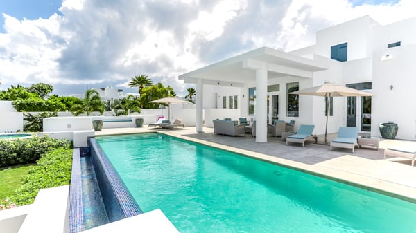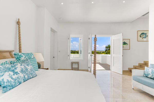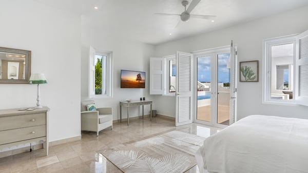 This luxurious modern villa, set along the meticulously manicured Greg Norman-designed Aurora Golf Course, offers six spacious bedrooms with captivating views of the rolling greens and the allure of coastal living, just a two-minute stroll from the stunning Rendezvous Bay Beach. Designed with sleek, contemporary architecture, the villa features floor-to-ceiling glass doors that flood the interiors with natural light and create a seamless connection between indoor and outdoor spaces. The main house includes five suites, each with plush king beds, spa-inspired en-suite bathrooms, and private terraces showcasing golf course views with glimpses of the beach and ocean. The bathrooms are outfitted with serene touches like rainfall showers, deep soaking tubs, and elegant double vanities. The guest house, located just steps from the main villa, provides a private retreat with a queen bed, cozy sitting area, kitchen, and bathroom. It also includes a private gym equipped with a treadmill, elliptical, bike, and free weights. The villa’s shared spaces are equally impressive. The open-plan living and dining area features sophisticated furnishings and ample seating, ideal for entertaining or relaxing. The gourmet kitchen is equipped with state-of-the-art appliances and a large island to meet any culinary need. Outside, the patio includes an infinity-edge pool, oversized hot tub, sun deck with lounge chairs, and a BBQ area with a shaded dining space, all designed to maximize panoramic views. A short, scenic path leads to the soft sands and crystal-clear waters of Rendezvous Bay Beach, perfect for morning walks, sunbathing, or snorkeling. With its proximity to the golf course and beach, the villa offers an extraordinary setting that combines oceanfront and resort-style living. A private golf cart provides convenient access to the resort's dining spots, golf club, and spa facilities, ensuring a truly relaxing and luxurious experience.