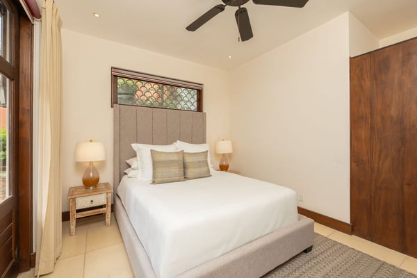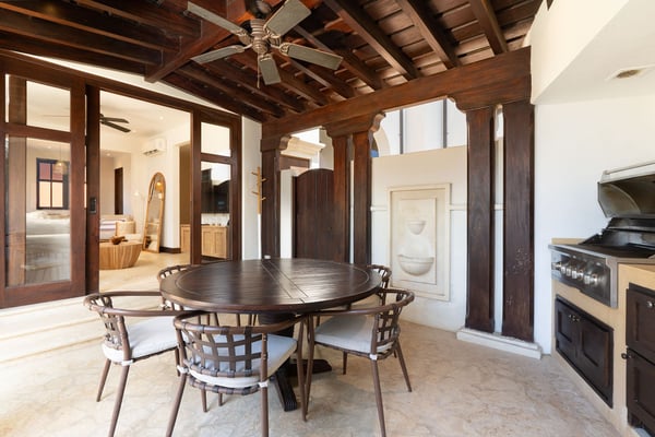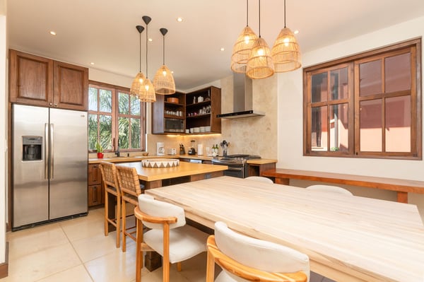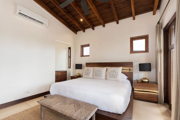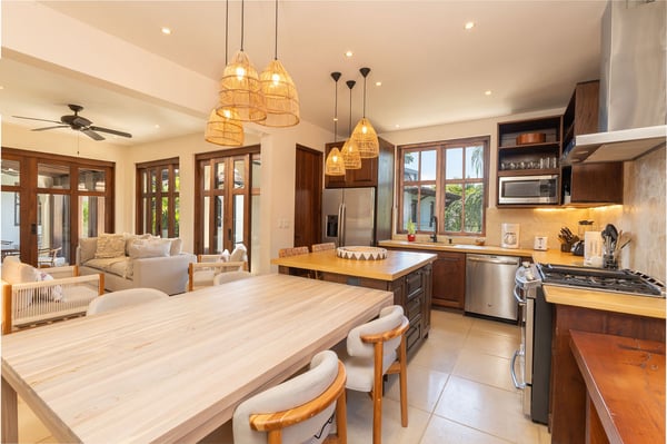 Be advised that construction is currently ongoing within the Las Catalinas area. Work is scheduled during standard hours, from 7:30 AM to 6 PM daily, and may extend until 9:30 PM. For more information on how this may impact your stay, please reach out to a villa specialist. Overlooking the vibrant Calle la Ronda, Casa Caura is perfectly situated to immerse you in the energy of this lively beach town. The home’s design prioritizes outdoor living, starting with a covered area that features seating for five, a grilling station, and a cozy lounge. The pool sits right at the edge of the property, offering captivating views of the bustling street below. Inside, the open-concept dining and living areas seamlessly connect to the outdoors through large sliding doors that flood the space with natural light and the warm tropical breeze. Rich dark wood accents and vibrant décor throughout the interior lend a welcoming and energetic ambiance. With a full kitchen and grill, this home is ideal for hosting memorable dinner parties and gatherings. The entrance level features two versatile guest rooms: one with a queen bed and another with a queen bed and a single bunk bed. These rooms share a full bathroom with a stand-alone shower, offering a cozy and functional setup for families or groups. On the main level, a guest bedroom boasts a king bed and a private en-suite bathroom with a stand-alone shower. The upper floor houses the master suite, complete with a king bed, an en-suite bathroom, and a private balcony offering peaceful views of the town. Additionally, a full bathroom with a stand-alone shower is conveniently located next to the pool terrace for added comfort and accessibility. Casa Caura effortlessly combines style, comfort, and practicality, making it the perfect retreat for enjoying the vibrant beach town lifestyle. Whether you’re relaxing by the pool, dining al fresco, or savouring the beautifully curated interiors, this home provides the perfect setting for unforgettable moments.