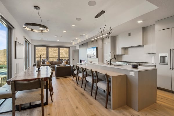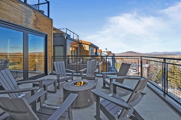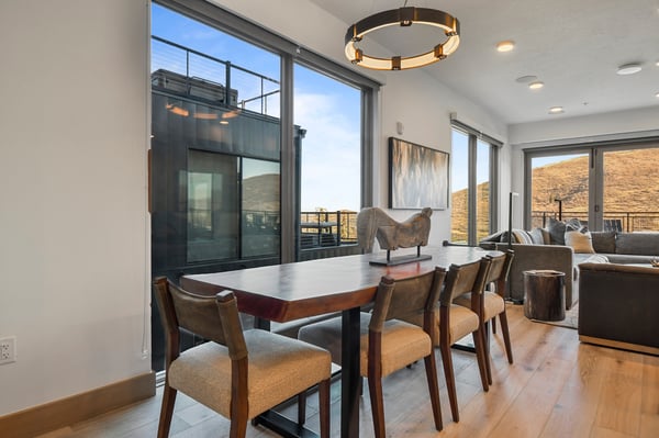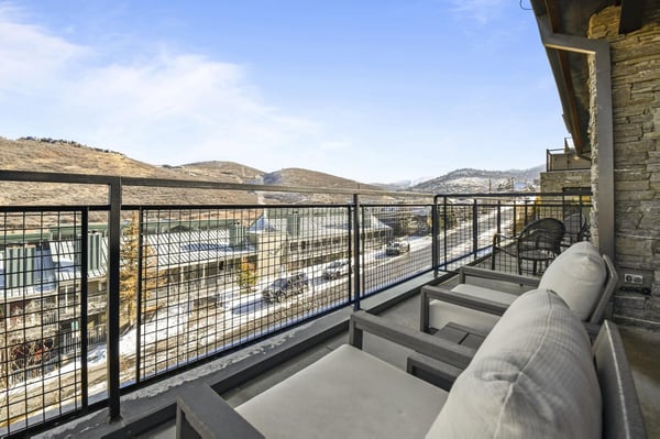 Rental Escapes has partnered with Ski Butlers to offer you the best rental experience in the industry. No more lines. Ski Butlers is a full-service ski and snowboard company that delivers the equipment to you. Contact a villa specialist for more information. Discover the year-round delights of Park City at Kings Crown 201C, a contemporary ski-in/ski-out condo with three bedrooms and three bathrooms that accommodates eight guests. Perched mountainside—minutes from Main Street’s restaurants, boutiques, and bars—this single-story condo is ideally located for experiencing the top attractions of this must-visit mountain town. Guests will love the luxurious community amenities, including a hot tub, ski lockers, and a seasonal pool. After a day hitting the trailheads or tackling ski runs, enjoy a night unwinding by the gas firepit or fireplace while savouring the sprawling mountain view! Sleek and stylish with ridgeline views and hardwood floors, the open layout of this condo’s welcoming great room was designed for flowing conversation and spending time with friends and family. Turn on the gas fireplace in the living space and settle back on the roomy L-shaped sofa and two club chairs for an evening watching TV or chatting. Top-of-the-line appliances feature in the spacious kitchen, complete with a four-stool breakfast bar and island. Grab a bottle of wine from the wet bar and indulge in après-ski drinks while prepping dinner to share at the dining table for eight. Venture onto the balcony to take in the mountain vista and relax in the rocking chairs beside the gas firepit. When it’s time to turn in for the evening, guests will find the primary bedroom has a king bed and a gas fireplace for optimal coziness. A guest bedroom with a king bed and a bunk room with 2 twin-over-full beds offer additional sleeping accommodations. Each of the bedrooms conveniently features a private bathroom and TV. With deluxe amenities and ski-in/ski-out access, Kings Crown 201C is perfect for leisure and luxury. On-site garage parking makes it easy to explore Main Street or the nearby Jordanelle Reservoir. For ski access, use the Crown Way ski easement.