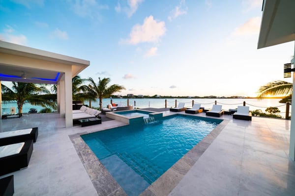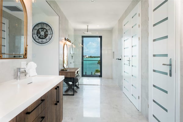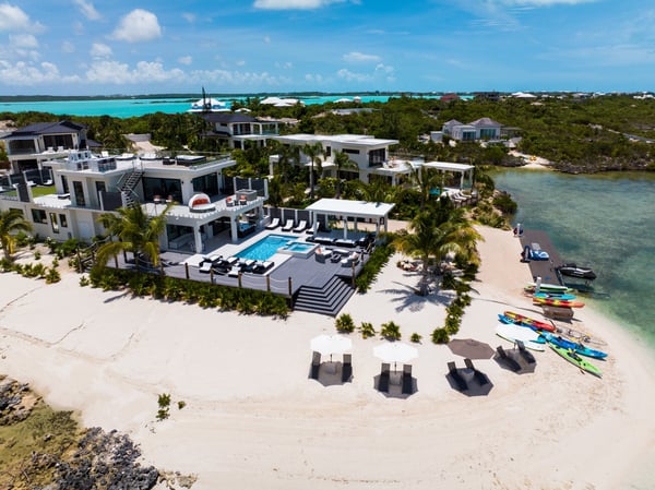 Tucked away in the peaceful, gated Sunny Bay Estates, this 4-bedroom villa has everything you’ve ever wanted: jaw-dropping views of Silly Creek, luxurious Versace details, and spaces designed for pure relaxation and fun. Whether you’re soaking in the private hot tub, lounging on the rooftop terrace with its 360-degree views, or just enjoying the open, breezy vibe of the living areas, Villa Horizon is all about making every moment unforgettable. Trust me, you’re going to fall in love with this place! Welcome to Horizon Beachfront Villa, a breathtaking 4-bedroom retreat located in the heart of Chalk Sound. This stunning waterfront sanctuary is a harmonious blend of luxury and the unspoiled beauty of nature, offering an unparalleled escape for discerning travellers. Nestled in the gated villa community of Sunny Bay Estates, Villa Beachfront Horizon is a masterpiece of tranquillity and elegance. Set atop the Chalk Sound Peninsula, this newly designed villa gazes over the serene waters of Silly Creek. Step inside to discover a realm of luxury. Villa Horizon boasts four spacious bedrooms, an airy open-plan kitchen, and a living area seamlessly blending indoor sophistication with outdoor splendour. At its heart lies the primary bedroom, an oasis of refinement featuring an open-concept design. This exquisite suite opens onto a wraparound balcony, complete with a private hot tub. Two of the three remaining bedrooms are located on the main level. Each is artfully designed and custom with Versace accents, king beds, spacious en-suite bathrooms and walk-in closets. The remaining 4th bedroom is located on the second floor near the primary suite. This bedroom has an open design with 2 queen beds, a walk-in closet, a wrap-around deck and access to a private putting green. An external staircase brings you to the rooftop terrace where you will be greeted by a sprawling 2,000-square-foot entertainment space with sweeping 360-degree views of the surrounding waters. This elevated paradise includes a curated bar for crafted cocktails, a plush sofa lounge for engaging conversations, a mesmerizing fire pit for cozy evenings, and a state-of-the-art entertainment system that immerses you in a symphony of ambiance. Every detail of Villa Horizon is a celebration of bespoke design. Adorned with luxurious Versace tiles and wallpaper, the villa is a tapestry of opulence. Each corner has been meticulously curated to embody the timeless allure of the Turks and Caicos Islands, making Villa Horizon the epitome of refined indulgence. Whether you're savouring the serene waters of Chalk Sound or unwinding in the villa’s luxurious amenities, Villa Horizon promises an escape like no other—a retreat where luxury and nature are in perfect harmony.
