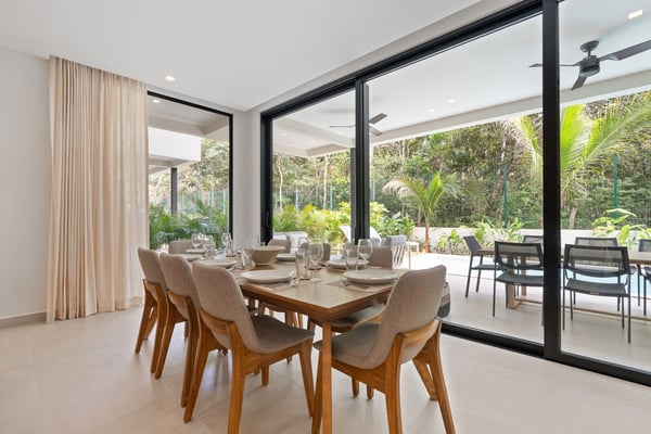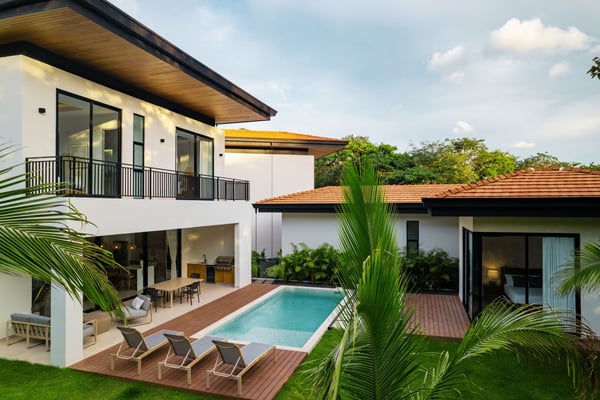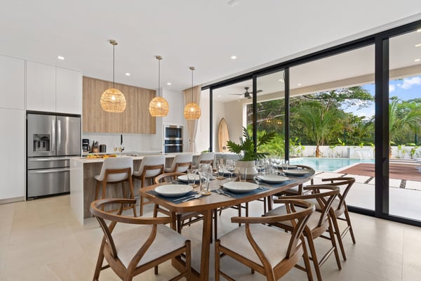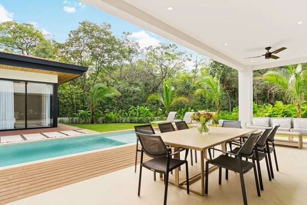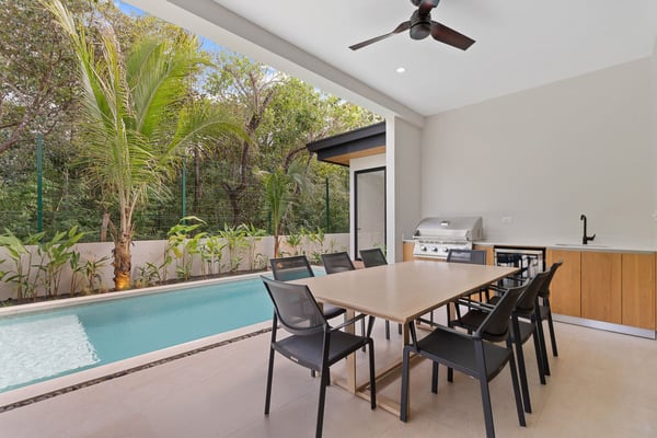 Welcome to Diamante del Bosque, this brand-new modern villa in the all-new residential community of Hacienda Pinilla is the largest of its kind, featuring 3 private villas, a heated jacuzzi, private pools, a rancho, and 17 private suites, accommodating up to 40 guests. It's the perfect setting for small weddings, offering plenty of space to host your closest family and friends. At Bosques de Pinilla, you’ll enjoy family-friendly amenities in the beautifully maintained common area. Enjoy a 70-ft lap pool, kids’ shallow area, sundeck, open-air BBQ, and exclusive access to the fitness and yoga room. Standout features: • 3 private modern villas with spacious accommodations • Bosques de Pinilla's Largest Villa • A private heated jacuzzi • 17 private suites hosting up to 40 guests • Rancho perfect for gatherings, events or yoga • Ideal for small weddings and intimate celebrations (pre-approval required) • Access to a 70-ft lap pool with a shallow area for kids • Access to a fully equipped fitness and yoga room, exclusive to the residential guests