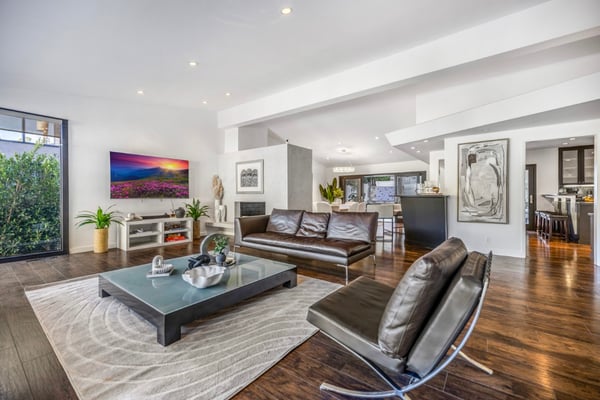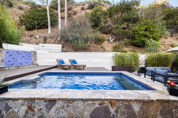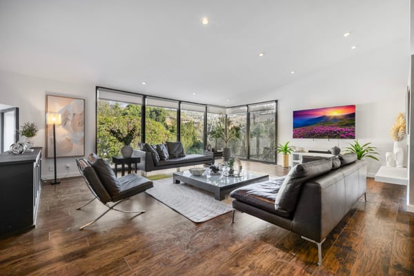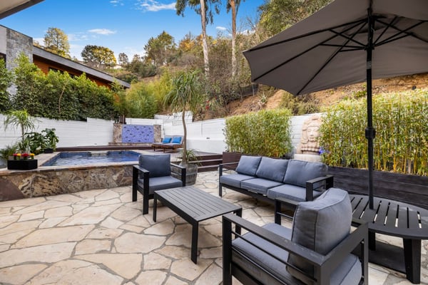 Welcome to an extraordinary Mid-Century Modern sanctuary, perfectly positioned in the coveted Beverly Hills Post Office enclave. Tucked away on a peaceful cul-de-sac off Coldwater Canyon, this stunning 3-bedroom, 3-bathroom residence effortlessly blends sophisticated style with unparalleled comfort. From the moment you step inside, you'll be captivated by the elegant design and seamless flow of space. Gleaming hardwood floors extend throughout the home, beautifully complemented by a striking two-way fireplace that serves as a focal point, connecting the spacious living areas. Floor-to-ceiling windows flood the interiors with natural light and offer breathtaking canyon views, creating a serene and inviting atmosphere. The chef-inspired kitchen is a masterpiece, equipped with premium Viking appliances, sleek cabinetry, and abundant counter space, making it the perfect space for both culinary creativity and entertaining. Every meal becomes an experience in this stylish, fully-equipped kitchen. Step outside to your own private oasis. The expansive outdoor space is an entertainer’s dream, featuring a resistance pool ideal for relaxing or swimming laps. The outdoor lounge area is perfect for alfresco dining or simply unwinding while enjoying the stunning canyon views. This luxurious home offers the ultimate in Mid-Century Modern elegance, where every detail has been thoughtfully designed to enhance your lifestyle. Whether you’re relaxing by the pool, hosting guests, or enjoying the tranquillity of your surroundings, this Beverly Hills gem promises a truly elevated living experience. HSR24-002919