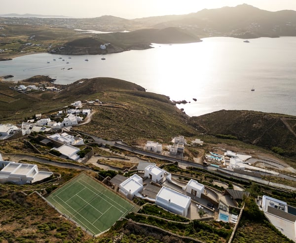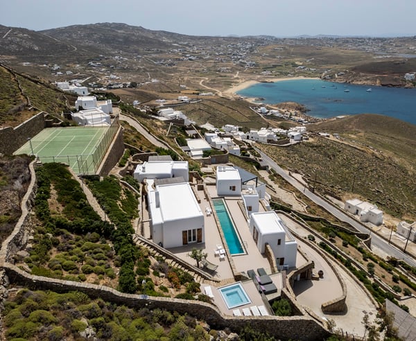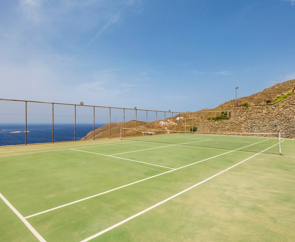 Nestled on the pristine shores of Ftelia Beach in Mykonos, this luxurious seven-bedroom villa offers an unparalleled combination of comfort, style, and privacy. Spread across three levels, the villa boasts spacious, elegantly designed interiors, with breathtaking views of the turquoise Aegean Sea. Each bedroom is a sanctuary of tranquillity, with modern furnishings and high-end amenities ensuring a restful stay. The expansive outdoor area is a true highlight, featuring a private, heated pool surrounded by lush landscaping and sun-drenched terraces. For ultimate relaxation, guests can unwind in the indulgent jacuzzi or rejuvenate in the state-of-the-art sauna. Sports enthusiasts will appreciate the villa's private tennis court, perfect for a friendly match with the sea breeze as a backdrop. Whether you're lounging by the pool, enjoying a soak in the jacuzzi, or taking in the spectacular sunsets over the beach, this villa is the perfect retreat for those seeking the finest in luxury living on Mykonos. With its seamless blend of modern design, exclusive amenities, and a prime beachfront location, this villa offers an unforgettable escape to one of Greece's most coveted destinations. Property License Number: 00003184342