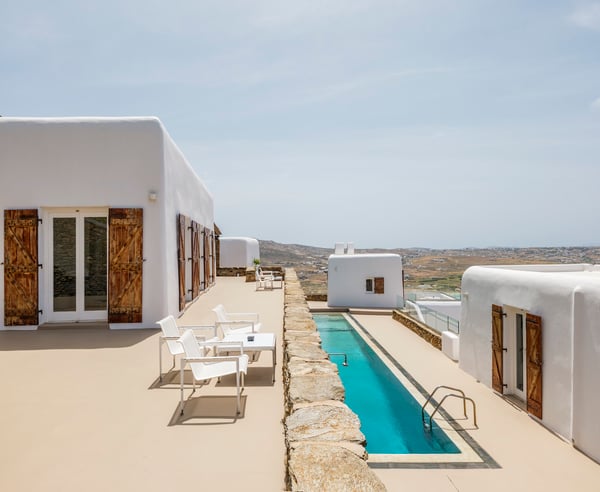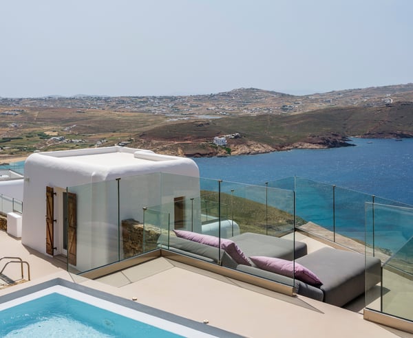 To Mykonos Town : 8,5km To Mykonos Airport : 8km To New Port: 11km To Scorpios : 12km To Ftelia Beach: 1,5km