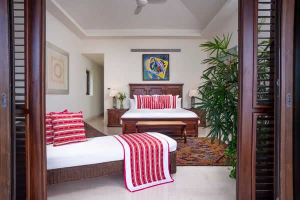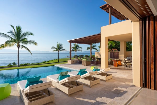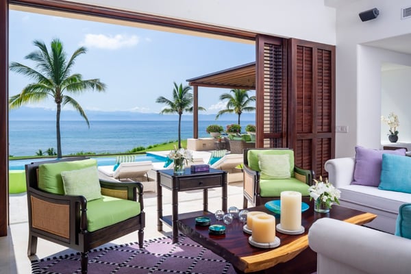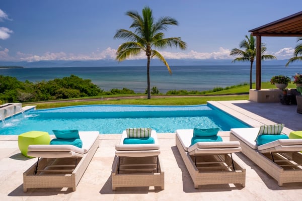 The Premier Golf Membership grants access to Pacifico Golf Course ($), Bahia Golf Course ($), the Tennis Centre ($), the Fitness Center ($), El Surf Club based on min. consumption fee ($), St.Regis Beach Club based on availability and min. consumption fee ($), Pacifico Beach Club, Sufí Ocean Club and Kupuri Beach Club. Contact one of our Villa Specialists for more information. Nestled within the prestigious El Encanto community, Casa Alegre is a refined coastal retreat offering breathtaking views of the Pacific Ocean and Jack Nicklaus Signature Golf Course. Designed to accommodate up to 10 guests, this four-bedroom villa blends sophisticated elegance with unparalleled comfort, providing an effortless escape into the luxury of Punta Mita’s world-class amenities. Thoughtfully designed to harmonize with its surroundings, Casa Alegre showcases a seamless blend of modern sophistication and natural beauty. The open-concept layout creates a fluid transition between the spacious living area and the fully equipped gourmet kitchen, leading effortlessly onto expansive private terraces. Here, guests can soak in panoramic ocean and golf course views while enjoying the gentle coastal breeze. Whether savoring a tranquil morning coffee by the infinity pool, indulging in al fresco dining, or unwinding in one of the four beautifully appointed bedrooms, every moment at Casa Alegre is curated for relaxation and connection. Offering the perfect balance between serenity and adventure, this villa is designed for unforgettable experiences in Punta Mita.