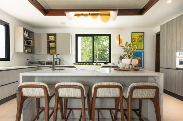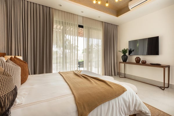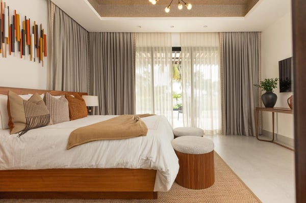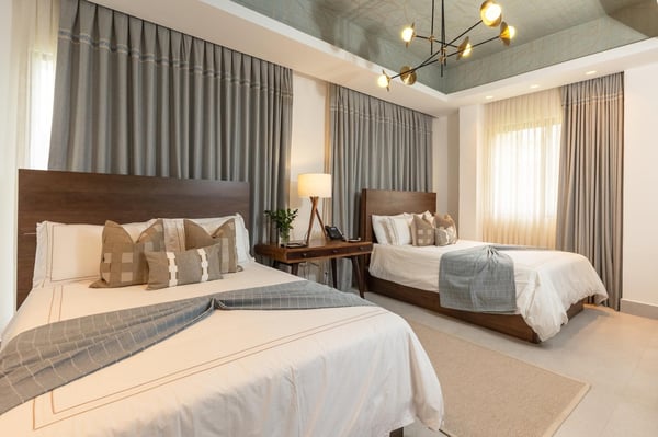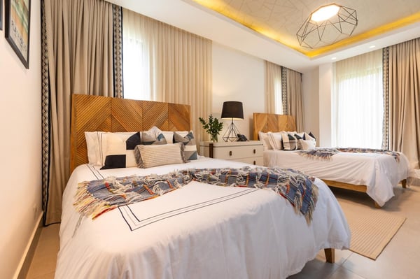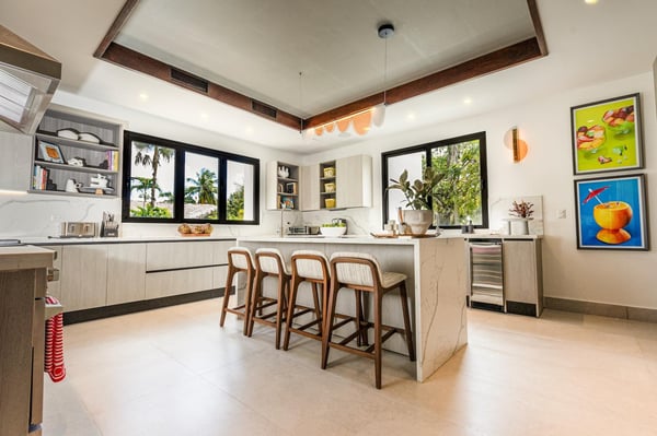 All guests must register with the Casa de Campo Concierge office, and for a small daily fee ($30 per adult per night & $15 per child per night), are granted access to resort areas and amenities. Casa de Campo Resort facilities and amenities include golf courses ($), the fitness centre ($), racquet center ($), restaurants ($) and bars ($). Contact Rental Escapes for more information about pricing. This modern and elegant villa offers a luxurious retreat in the heart of Casa de Campo, just a short walk from the tennis and paddle center and minutes from the beach, marina, restaurants, and shops. Designed for both relaxation and entertainment, it’s the perfect destination for a family getaway or a golf vacation. The spacious two-story layout comfortably accommodates up to 12 guests across five beautifully appointed bedrooms, each with its own en-suite bathroom. Additional conveniences include a poolside half bath and a guest powder room. The villa features a fully equipped eat-in kitchen, a stylish studio, a refreshing pool, and an expansive jacuzzi, creating the perfect blend of comfort and sophistication. A dedicated staff, including a cook, housekeeper, and waiter, ensures a seamless and stress-free stay. Whether you’re enjoying a day on the golf course, lounging by the pool, or exploring the vibrant surroundings, this villa provides the ultimate Caribbean escape.
