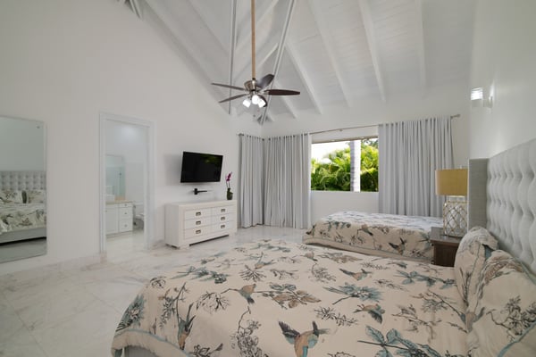 All guests must register with the Casa de Campo Concierge office, and for a small daily fee ($30 per adult per night & $15 per child per night), are granted access to resort areas and amenities. Casa de Campo Resort facilities and amenities include golf courses ($), the fitness centre ($), racquet center ($), restaurants ($) and bars ($). Contact Rental Escapes for more information about pricing. Enjoy fun times in this cozy villa, surrounded by palm trees, just 7 minutes away from Altos de Chavón. All the areas are spacious and the magic happens in the outdoor garden with a large patio, pool and Jacuzzi where you can enjoy a great times together. Surrounded by peace and quiet to ensure a most relaxing vacation.