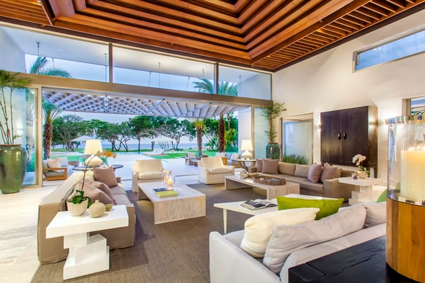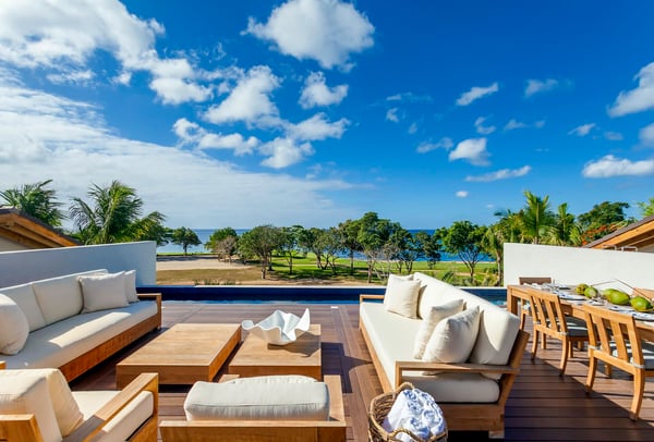 All guests must register with the Casa de Campo Concierge office, and for a small daily fee ($30 per adult per night & $15 per child per night), are granted access to resort areas and amenities. Casa de Campo Resort facilities and amenities include golf courses ($), the fitness centre ($), racquet center ($), restaurants ($) and bars ($). Contact Rental Escapes for more information about pricing. When it comes to true Caribbean luxury, Casa Alba never fails to impress. Designed with clean lines and a modern aesthetic, this 3-story Oceanfront villa features 6 bedrooms that can sleep up to 12 people, 9 bathrooms spread all around the house, an elevator for ease of transport from one floor to another, large dining areas, and watching TV while hanging out with friends. The main attraction that sets Casa Alba apart is its rooftop terrace, equipped with a bar, a living and dining area, and a pool that overlooks the patio, the Teeth of the Dog golf course, and the Caribbean sea. Step outside to enjoy the picturesque views while taking a dip in the pool, having lunch at the outdoor dining area, or relaxing at one of the 4 terraces. If you’re looking to enjoy the company of your loved ones, Casa Alba offers the perfect setting for a large family vacation.