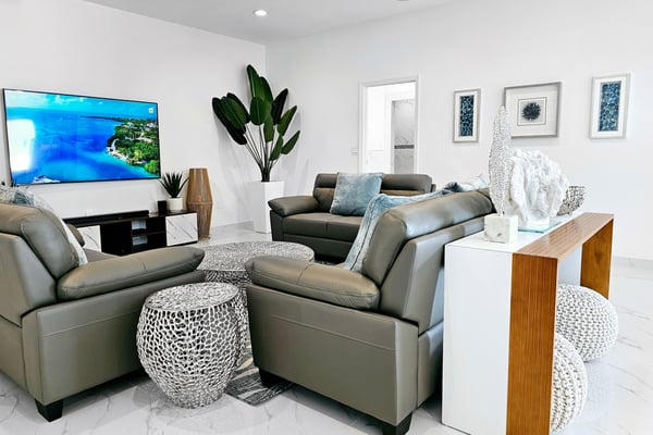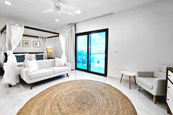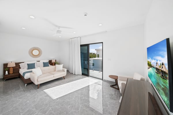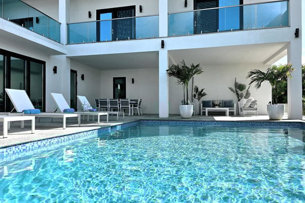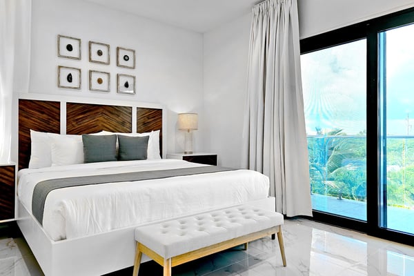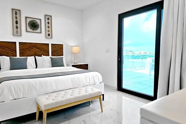 Discover your perfect getaway at this brand-new villa located in the serene Long By area, in Providenciales. This luxurious retreat boasts 4 spacious bedrooms, each with its own en-suite bathroom, walk-in closets and an additional guest bathroom. Just a 5-minute walk from the world-famous Long Bay Beach, you can easily enjoy the pristine sands and turquoise crystal-clear waters at your convenience. The villa features a stunning outdoor pool and a large covered patio furnished with stylish outdoor furniture, a hammock, creating an idyllic setting for relaxation and enjoyment. The open-plan living and dining area, with large sliding glass doors, seamlessly connects the indoor and outdoor spaces, allowing you to soak in the beautiful private pool view and the surrounding tranquillity. Enjoy the brand new amenities and breathtaking ocean views in this fully gated property, the perfect place to relax and experience paradise in serenity. This versatile property can be rented as a 4-bedroom, 8-bedroom, or 12-bedroom villa. Each configuration includes its own private pool, accommodating groups of various sizes. Experience the perfect blend of luxury and serenity in these exquisite villas, and enjoy an unforgettable stay in paradise with friends and family.
