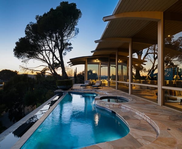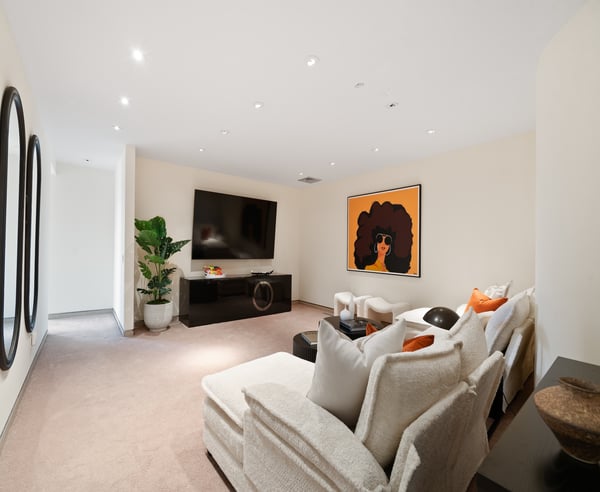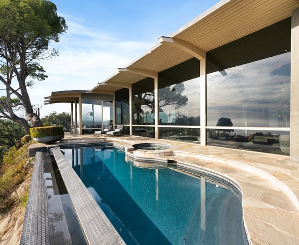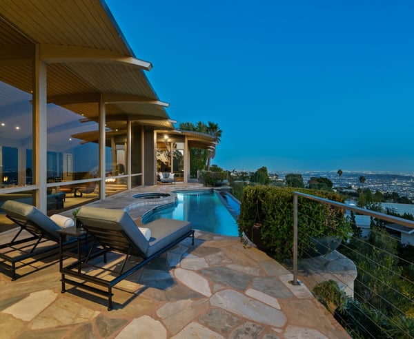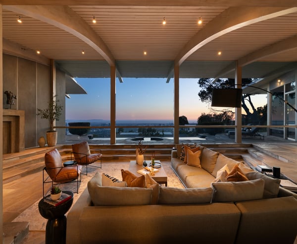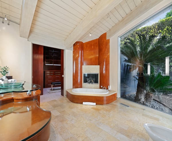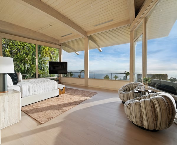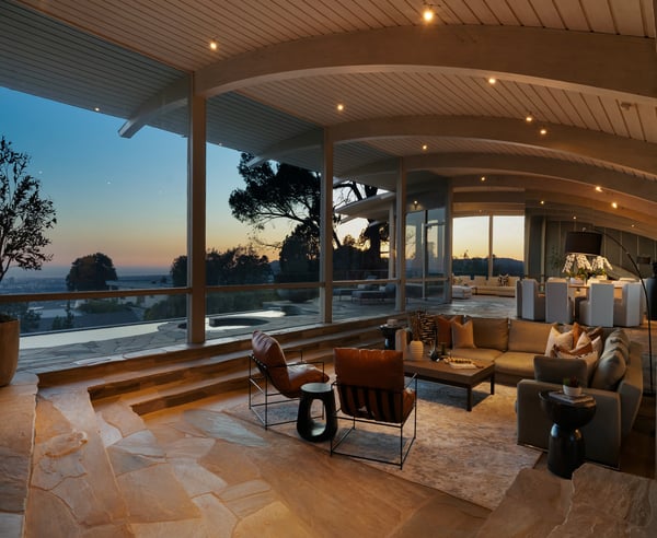 Nestled in the prestigious Trousdale Estates of Beverly Hills, this gated residence at the end of a cul-de-sac offers stunning views of the LA skyline and Pacific Ocean. The grand courtyard features stone floors, soaring fireplaces, and walls of glass. Inside, the home includes a luxurious primary suite with separate his and hers baths and closets, a chef’s kitchen with high-end appliances, and versatile bedrooms. The lower level offers a two-bedroom suite with a junior kitchen, theatre room, and exterior patio.
