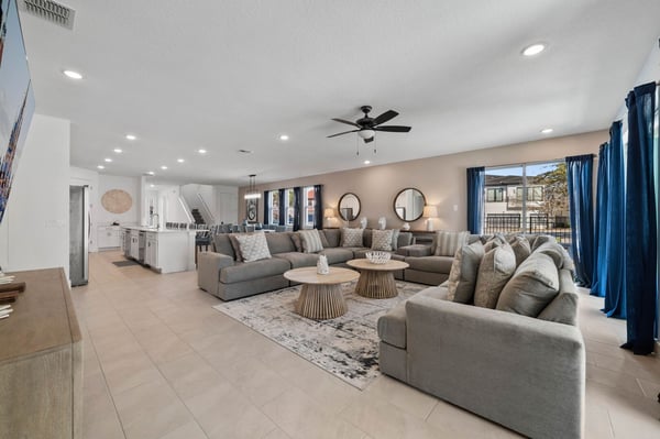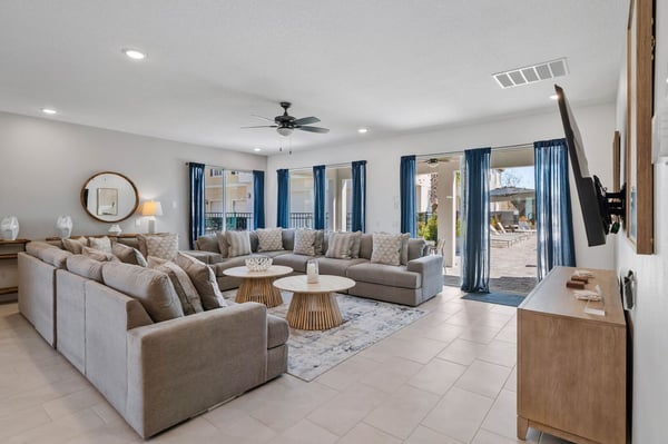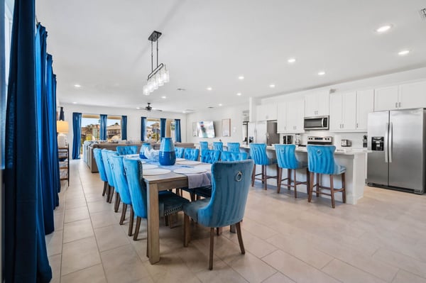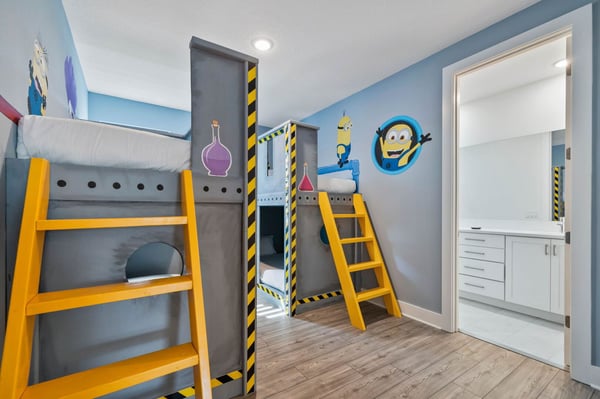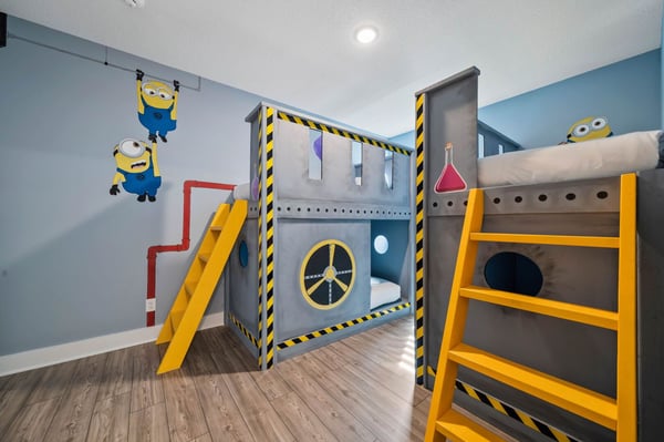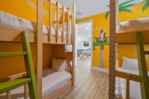 Prepare for the ultimate vacation in this stunning 8-bedroom luxury retreat, perfectly situated in the prestigious Reunion Resort! Designed to accommodate up to 20 guests, this spacious getaway is packed with top-tier amenities, thrilling entertainment, and plenty of room for everyone. Whether you're planning a family reunion, a group escape, or a special celebration, this home promises an unforgettable Florida adventure! With six elegant king bedrooms and two enchanting themed bunk rooms, everyone gets a cozy and stylish space to unwind. Kids (and kids at heart!) will love the Lion King and Minions-inspired bunk rooms, featuring whimsical décor and four full beds in each—ideal for fun-filled sleepovers and late-night giggles. The open-concept living area is perfect for gathering! Cook up a feast in the fully equipped chef’s kitchen with sleek stainless steel appliances, then enjoy meals together in the spacious dining area. After dinner, sink into the plush seating in the chic living room for movie nights, laughter, and lasting memories. Step outside into your private oasis, where a sparkling pool, luxurious loungers, and ample space invite you to soak up the Florida sunshine. As the evening settles, cozy up by the fire pit to roast marshmallows and swap stories under the stars. And with a splash pad for endless fun, guests of all ages will be entertained from morning to night!