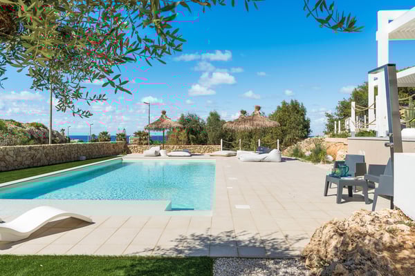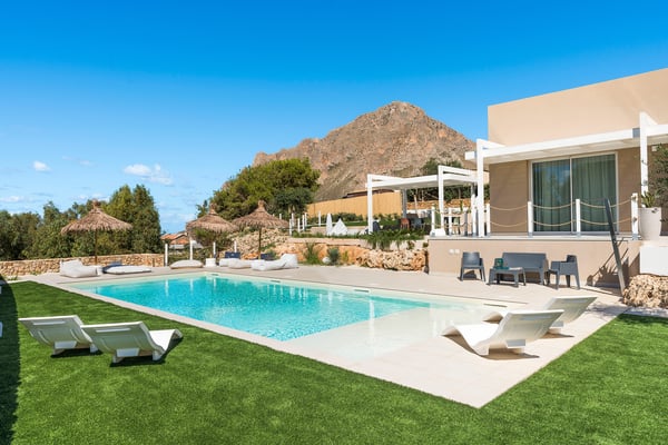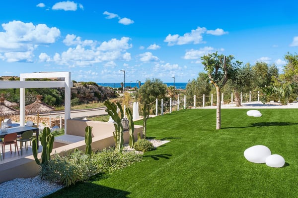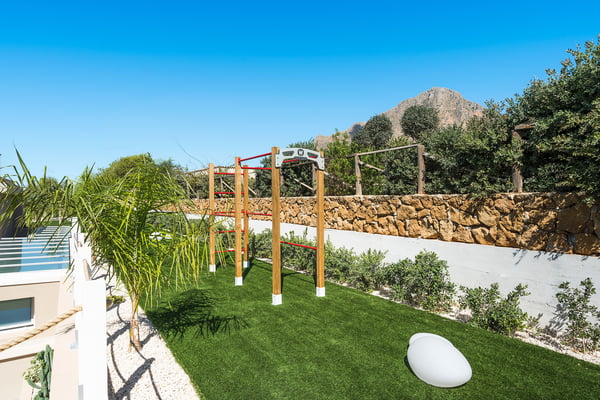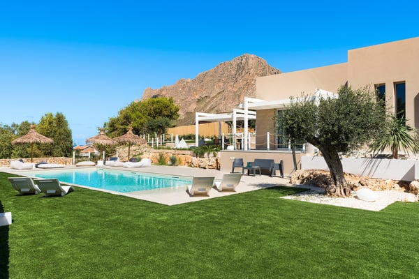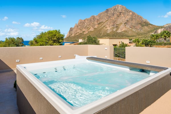 Castalia is a stunning villa with swimming pool and wellness area, located in Cornino, a renowned seaside resort near Trapani, Erice and San Vito Lo Capo. Located along one of the streets leading from Custonaci to the sea, this exclusive residence is surrounded by a sizeable and well-kept garden with eco-lawn, embellished by a stunning swimming pool with solarium, hot tub and panoramic terraces from which you can enjoy enchanting views of Mount Cofano and the sea. The villa, split over two levels, offers cosy and well-divided interiors, furnished with particular care and attention to materials and finishes. The raised ground floor includes a spacious living area with kitchen, a bathroom and two comfortable bedrooms with queen-size beds and bathroom with shower. On the lower floor are two additional bedrooms with bathroom-shower and the exclusive wellness area comprised of an indoor heated pool with waterfall and hydromassage area, sauna, Turkish bath, emotional shower, herbal tea station, relaxation area, massage room and two bathrooms. The residence is even equipped with air-conditioning in all rooms, Wi-Fi, 6 Smart TVs, washing machine, dryer, dishwasher, electric oven and microwave, espresso machine and American coffee maker, water purifier, ice machine, barbecue area and private parking. Ideal for savouring comfortable and relaxing holidays at any time of the year, Castalia is an excellent base for visiting interesting nearby towns such as Erice, Trapani, Marsala, the Egadi Islands, the Riserva dello Zingaro and the archaeological sites of Segesta, Mothia and Selinunte. CIN: IT081007C2R5IOHC75
