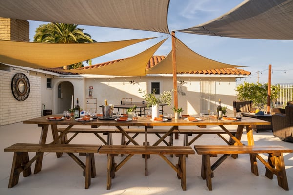 • We do not allow bookings that are less than 24 hours from check-in. • This home does not offer pool heat. • ATVs and dirt bikes are not allowed on the property. • Bedroom 2 is only accessible through the Primary Bedroom. • Absolutely no exterior amplified music or there will be a $500 fine • Due to the remote location of our properties guests may experience unannounced power outages. • No events or parties are allowed at this property. • All occupants and guests of the property must follow local laws for outdoor lighting, quiet hours, and parties & gatherings (Riverside County Ordinance Nos. 915, 847, & 924). • Riverside county has a strict "no burn" civil code. All wood-burning fires throughout the property are strictly prohibited. • The hot tub/spa/jacuzzi has a max temperature of 104° for safety reasons. • Please note that you must be at least 25 years old to book this home. • Pets are not permitted at this property. Unauthorized pets may be subject to a fine. • This is a smoke-free home. Violation of the no-smoking policy will result in a $500 fee for additional cleaning and other related costs, in addition to the Guest being responsible for any damages attributable to smoking beyond said fee. • Please be considerate of your neighbors and mindful of noise levels. Noise violations may result in fines. Please also note we do not provide speakers or sound systems. • The rates for this property are dynamic and are constantly changing. The price listed above is only a starting rate and does not necessarily reflect the price for your travel dates. Please contact a Villa Specialist for exact pricing details.