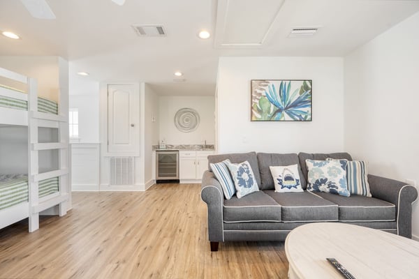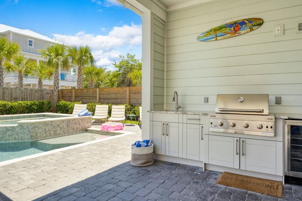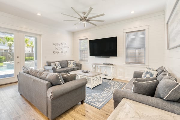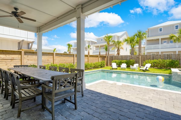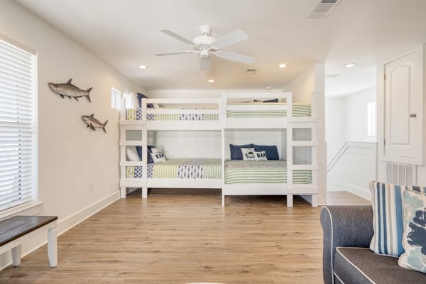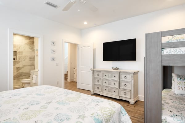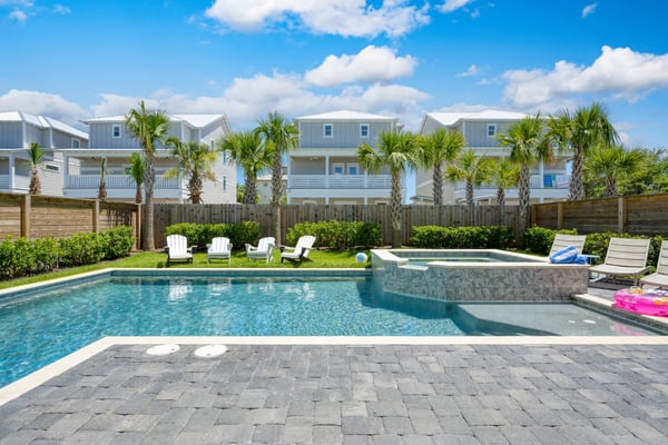 Looking to spoil your group with tons of space, a private pool, and a chic design? This home puts relaxation amidst the beaches of Destin at your fingertips. Outside, lounge by the water, relax in the hot tub, or kick back in the covered outdoor dining area. With a spacious grilling and prep area, plus an outdoor television, there’s no better place to entertain and connect. Touches of coastal flair bring the sunny vibes inside to the living room, complete with three couches, a large dining table, and a modern kitchen with island seating. Unpack and spread out between the seven bedrooms (some with unique bunking options) and seven full bathrooms. Snorkeling, swimming, and sandy beaches are just minutes away by car. No matter how you choose to experience the Sunshine State, Azure Escape is waiting to welcome you. Located in Northwest Florida, Destin is dubbed the “world’s luckiest fishing village.” This Emerald Coast city is known for its sparkling white beaches, numerous golf courses, and world-famous fishing. Nearby zipline courses, dolphin cruises, and amusement parks make it a perfect destination for families. Adults and large groups also come here for beach parties during the day and live music at night. Walton County TDT Registration Number: 34479