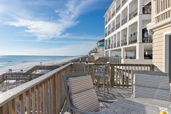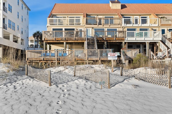 Please note that active commercial and residential construction is currently underway in the city of Destin. Destiny's Edge is an end unit with 10' of extra land and space with 33' of beach frontage! You can walk directly onto your very own private beach and play in the emerald green waters of the Gulf of Mexico. From the top floor private deck, you can see the coastline from Destin all the way to Panama City Beach! The main floor has the kitchen with granite countertops and stainless-steel appliances, a dining area, a living area, a sunroom, and a large 25'x14' deck! The primary bedroom is located on the top floor with a wall of windows to give you a gorgeous view of the white sandy beach and the Gulf of Mexico! One additional bedroom with a full bathroom is also located on the top floor. The beach level has a large bedroom and full bath, along with a large family room with a kitchenette area. Two sets of sliding glass doors lead to the 34' x 25' huge deck, partly covered with an open area to entertain and enjoy! Vacationing in Miramar Beach is like taking a stroll down memory lane through the beach towns of your childhood. This South Walton neighborhood brings back the feel of those classic coastal enclaves with its scenic beach roads, surf shops, fabulous restaurants, beachfront homes, and beachside resorts and condos on Miramar Beach with panoramic views of the Gulf of Mexico. But don't let the nostalgic beach vibe of Miramar Beach fool you. It also has ultra-modern amenities and activities that are ideal for family fun. Spend the day enjoying jet ski rentals, parasailing, and endless shopping opportunities at one of the nation's largest designer outlet centers, Silver Sands Premium Outlets.