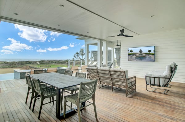 Welcome to Palm Serenity House, your oceanfront sanctuary on the Isle of Palms. This beach villa beckons with a private boardwalk leading you directly to the shore, ensuring endless moments of seaside bliss. Dip into relaxation at the private pool, surrounded by a spacious patio adorned with loungers and boasting unobstructed ocean views. The outdoor living area, shaded and serenaded by the soothing waves, invites you to unwind. Enjoy an alfresco dining experience with the ocean as your backdrop, complemented by a luxe outdoor kitchen and two grills for culinary enthusiasts. As the sun sets, gather around the fire pit lounge in the yard, creating memories under the starlit sky. The living room, adorned with huge windows framing captivating water views, offers a cozy fireplace, plush seating, and a television for laid-back evenings. Palm Serenity House exudes a crisp, contemporary atmosphere, adorned with curated architectural and design details. From custom lighting to beamed ceilings and a stunning tile backsplash in the gourmet chef's kitchen, every corner is a testament to elegance and comfort. The spacious driveway ensures convenient parking, while the beautiful bedrooms provide everyone with their own haven. Select bathrooms elevate the experience with luxury standalone soaking bathtubs, completing the perfect retreat for your group. Experience the epitome of coastal living at Palm Serenity House – where the sea, sand, and sophistication converge to create an unforgettable getaway. Just off the coast of Historic Charleston, Isle of Palms offers a stunning six-mile stretch of white, sandy beaches. Spend the day chartering a boat and paddleboarding in the Atlantic, or explore the extensive wildlife within the area's marshes and creeks. Isle of Palms is also the perfect place to decompress, with renowned spas, charming restaurants, and sweeping golf courses. All this and more await you in the jewel of South Carolina's Lowcountry.