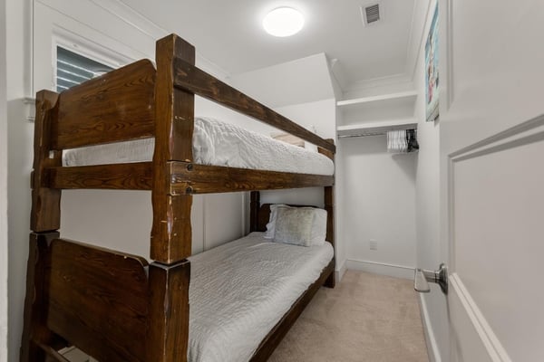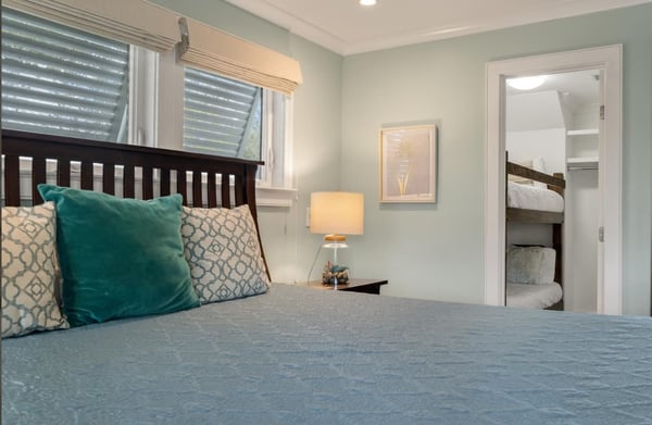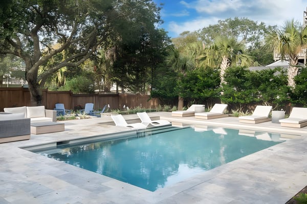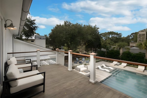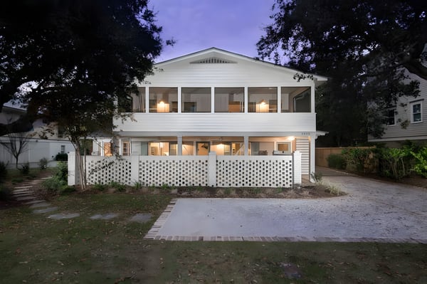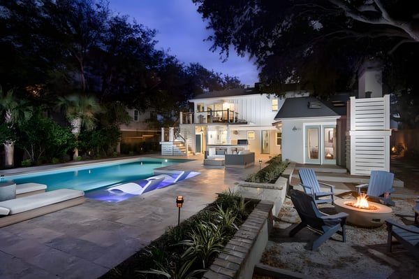 At Sea Glass Getaway, your family is going to want to return to this amazing home year after year after year! Featuring four bedrooms, a small bunkroom, and three baths, Sea Glass Getaway has every feature to provide your family with the perfect vacation. First, the outdoor pool is one of the best on the Isle of Palms. Featuring a baja shelf with built-in lounge chairs, the pool is designed to replicate the best part of relaxing at the ocean's edge. Surrounded by travertine tile, this amazing pool deck features a number of chairs and loungers. Adjacent to the pool is a putting green, a gas fire pit surrounded by Adirondack chairs, plus a complete outdoor kitchen that includes a grill, ice maker, sink, ice chest, and ample bar seating. A bonus feature is the private outdoor shower that features hot and cold water. Sea Glass Getaway has created the perfect backyard retreat! With the same thought, care, and design, the backyard retreat extends into the interior of Sea Glass Getaway. Simply put, this home is the ideal house at the beach! First, the entrance is on the ground level with the main living level, which also features three bedrooms. This makes the house perfect for any family members who would prefer not to deal with steps, which is very unusual on the island. Next, every interior wall features white shiplap with gorgeous wood flooring. Nautical-themed artwork is predominantly featured throughout the home. Even the cabinetry in the kitchen features boat cleat pull knobs. The first level features the dining area with seating for eight, plus three additional seats at the bar. Adjacent to the dining area is a wonderful kitchen featuring white cabinetry and stainless-steel appliances. A sitting room with an extensive library is the perfect place to reflect on the day, build a puzzle, or simply read one of the many outstanding novels on the bookshelves. A sleeper sofa (queen) is featured in the sitting room. Sea Glass Getaway features two primary bedrooms. The first is located on the first level and is highlighted with a queen bed, vaulted ceiling, and a gorgeous private bath. The tile work in this bathroom is outstanding. The second primary bedroom is located on the second level. It features a king bed, a cool ceiling with exposed beams that boasts four motorized skylights, and direct access to a huge screen porch. There is a bunkroom just off the upper-level primary bedroom with a bunk bed perfect for kids. This room does not have a separate door, and access to the room is through the primary bedroom. Two additional bedrooms are located on the first level, which share a bathroom. The first features a bunk bed, with a full bed on the bottom and a twin bed on top. A folding chair in the bunk room turns into a single-bed pallet. The second has a beautiful queen bed. Finally, the living area on the second floor is designed to be comfortable and fun! It features a large wrap-around sofa with extra seating and a large television. The sofa (queen), as well as the adjacent chair (single), are both sleepers that each feature an upgraded foam mattress to provide additional options for bedding. In addition, a ping pong table is set up, just off the living space. This area has direct access to a deck overlooking the backyard retreat and a spacious screen porch that features a porch swing bed in addition to other deck furniture. Just off the coast of Historic Charleston, Isle of Palms offers a stunning six-mile stretch of white, sandy beaches. Spend the day chartering a boat and paddleboarding in the Atlantic, or explore the extensive wildlife within the area's marshes and creeks. Isle of Palms is also the perfect place to decompress, with renowned spas, charming restaurants, and sweeping golf courses. All this and more await you in the jewel of South Carolina's Lowcountry.