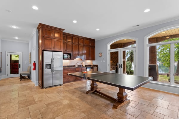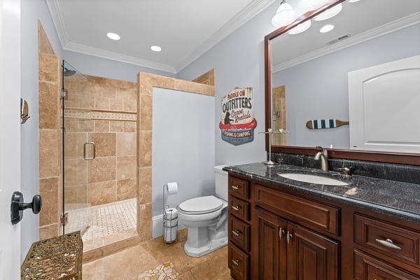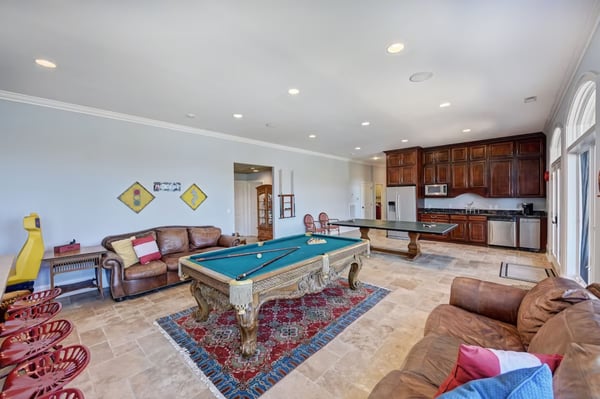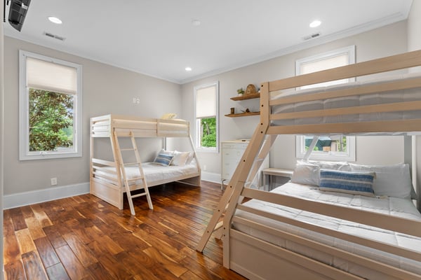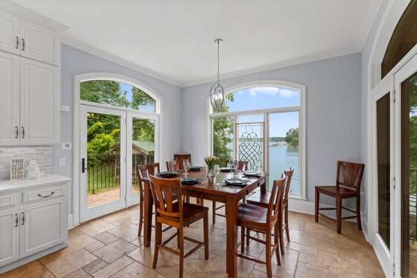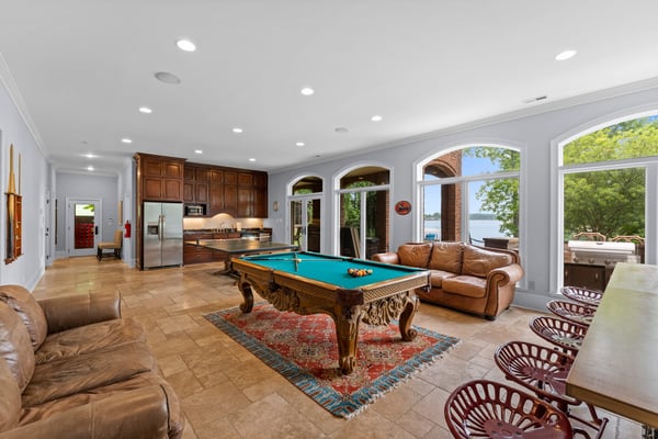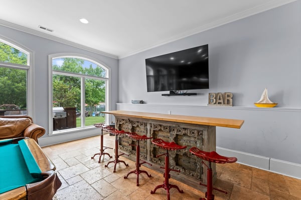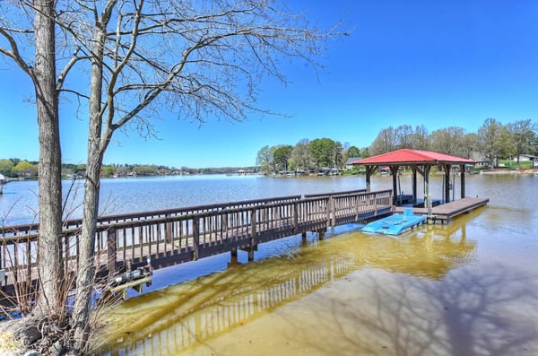 Once you enter Driftwood Escape, all your troubles are left at the front door. Suddenly, you are transported to a world of relaxation, pampering, and just plain family fun! This magnificent three-story, 7,000+ sq. ft home promises not to disappoint. This house leaves nothing behind, with 6 sleeping areas, 5 full baths, a game room, a movie theatre, and even a candy shop! Upon entering the custom-made double doors, you are immediately greeted by an open living space featuring floor-to-ceiling windows with expansive views of Lake Norman. The living room overlooks the lake with a sitting area perfect for observing the lake or watching TV. It's complete with two large comfy couches, a recliner, and a large TV for all to enjoy. The main living space bursts with natural light, which promises an open and airy atmosphere. It also makes for a great place to spend the day with your loved ones. Just steps away, you will find yourself in the newly renovated kitchen featuring white quartz countertops, a large island with seating for four, modern light fixtures, and a beautiful tile backsplash. The open kitchen is fully equipped to handle any occasion, whether an elaborate holiday feast or feeding a growing family. It's easy to keep the kitchen stocked with all their favourite drinks and snacks in the spacious and convenient walk-in pantry. The main level offers an inviting guest bedroom & ensuite full bathroom with a luxurious and cozy full bed, perfect for retiring at the end of a busy lake day! As we wander to the upper level, there are four bedrooms and three full baths, including the primary bedroom with an ensuite bath. The three remaining bedrooms, with attached bathrooms, are well-appointed with new plush bedding and a secret closet in the kids' room stocked with toys that kids of all ages will enjoy! The laundry room is one to be envied by all guests! Off the laundry room is a large gym area and office with two queen Murphy beds for additional sleeping options. The lower level is where the fun and games will take place! Did someone say Family Game Night? The large game room hosts a pool table, ping pong overlay, driving arcade game, and a pinball machine. The game room has a mini kitchen with a full-size fridge, dishwasher, microwave, and lake-friendly drinkware and serveware. For the adults in your party, the game room also features a large bar with stools for 5 and a large-screen TV to watch the game! Additionally, on the lower level is a movie theatre room fully stocked with comfy recliners, a projector, and surround sound. Gather the kids and enjoy some family time at the movies. Don't forget to make a pit stop at the stocked candy shop! Parents and kids alike will enjoy this special treat during the season's best flick or favourite sporting event! At the end of the hall is a queen bedroom perfect for lake views and easy access to the backyard and the lake. Once outside, there are so many options for you to choose from. Lakefront, we start on the far left with the "Hammock House." Appropriately named, this screened-in shack hosts two large hammocks for all to enjoy while relaxing in the shade. Next to the Hammock House is a fire pit surrounded by new Trex Adirondack chairs, perfect for making S'mores and sharing lake day stories while watching the breathtaking sunset. Adjacent to the fire pit is a wooden deck with a table and chairs surrounded by outdoor couches for lounging and being lazy - just what the doctor ordered! Further down the lakefront is a large dock & boat house. The dock is staged for tons of dockside entertainment. Please inquire about the 2017 16-passenger 150 HP tri-toon available for rent. For your convenience, there is a boat lift and 2 jet ski lifts if you should choose to rent. Conveniently located on the dock are all the fun lake toys, including a kayak, a paddleboard, and an assortment of life jackets.