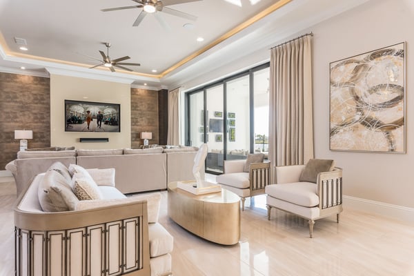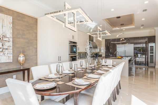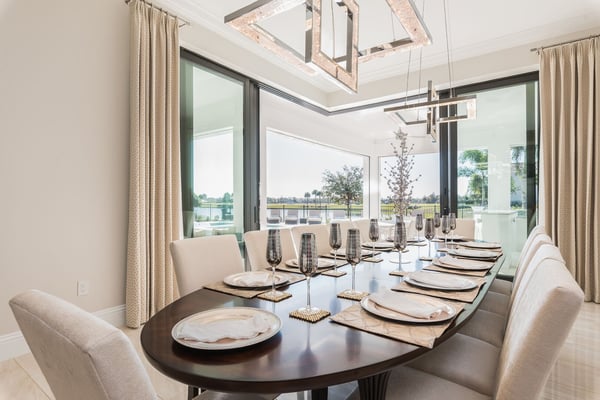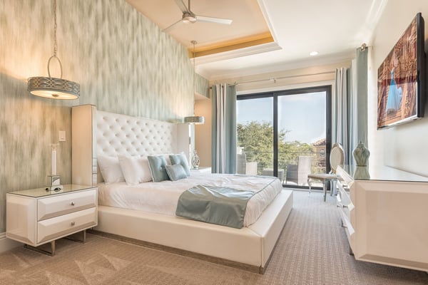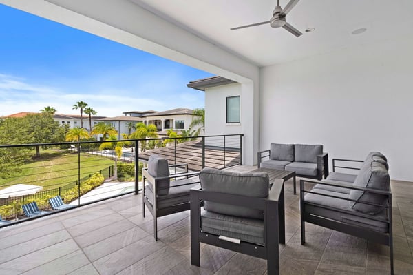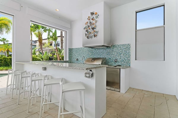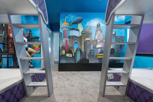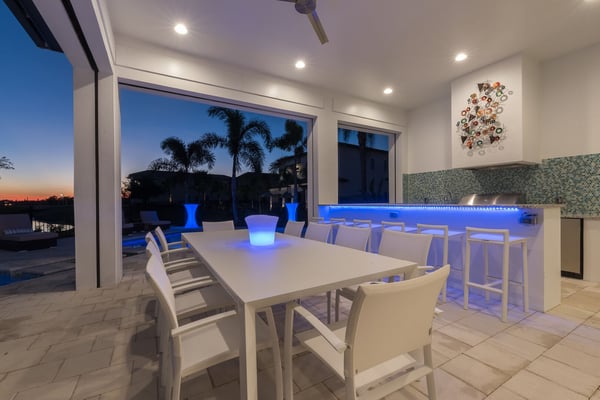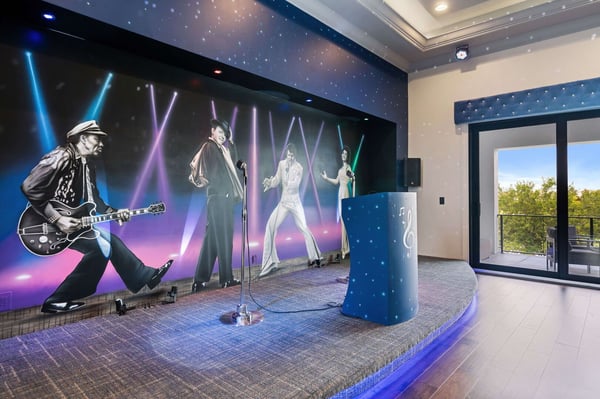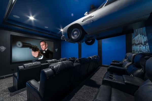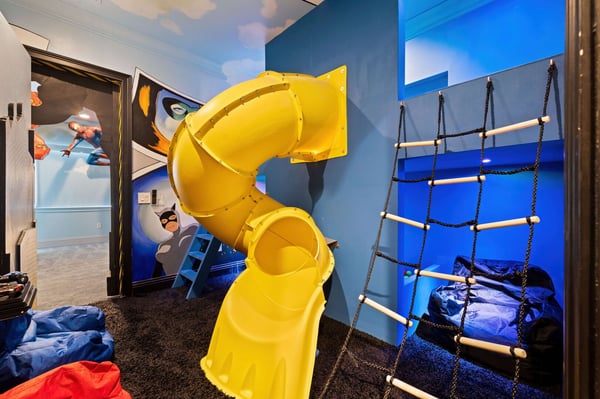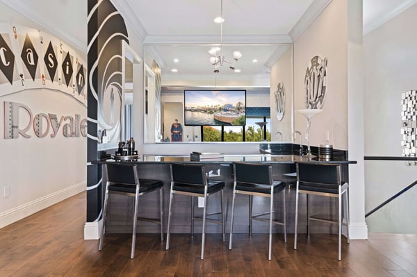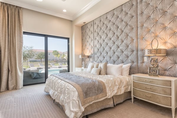 Step into modern luxury with this stunning vacation home, where sleek design and high-end amenities create an unforgettable escape. Every inch of this estate is rafted with contemporary elegance, offering a seamless blend of style and comfort. The open living room is a showcase of modern design, featuring a sophisticated palette of champagne and silver tones. Cutting-edge lighting illuminates the space, highlighting the plush, minimalist seating that invites relaxation. Imagine sipping a perfectly crafted martini as you unwind in this chic, serene environment. The state-of-the-art kitchen is a culinary dream, equipped with premium appliances, a spacious refrigerator, a wine cooler, and a stylish breakfast bar with four modern stools. The adjacent dining area, with a sleek table seating 12, is perfect for hosting gourmet meals in an atmosphere of refined elegance. This home is designed for entertainment, surpassing expectations with its array of amenities. The karaoke lounge, outfitted with the latest multimedia technology, is the perfect spot for lively evenings of music and fun. The game room, featuring multi-arcade video games, offers a nod to classic and contemporary gaming, set against a backdrop of sleek decor that honors the legacy of James Bond with subtle sophistication. The centerpiece of the home’s entertainment offerings is the multi-level home theater, an immersive space dedicated to cinematic experiences. The room is a modern marvel, with a replica of Bond’s iconic Aston Martin suspended from the ceiling, setting the stage for epic movie nights. The bedrooms are the epitome of modern luxury, each designed with clean lines and sumptuous materials. King- and Queen-sized beds are set against walls adorned with quilted padding in rich, contemporary fabrics, creating a serene retreat for rest. The en suite bathrooms are masterpieces of modern design, featuring dual sinks, expansive showers, and luxurious soaking tubs. Glamorous, well-lit vanities provide a touch of Hollywood glamour, perfect for preparing for an evening out or simply indulging in a bit of pampering. The second-floor balcony extends the living space outdoors, offering a sleek seating area and a modern foosball table for casual entertainment. For the younger guests, two themed bedrooms offer a modern twist on superhero decor, with custom-designed bunk beds and wall art that brings their favorite heroes to life. The design is both playful and sophisticated, appealing to all ages. The outdoor space is a private oasis of modern luxury, featuring a west-facing pool deck that’s perfect for taking in the breathtaking Florida sunsets. The dual infinity pool and spa are stunningly positioned on the edge of a serene, man-made lake, providing a tranquil setting for relaxation. The patio is an entertainer’s dream, with a modern summer kitchen, a sleek dining table for 10, a chic bar with six stools, a flat-screen TV, and multiple contemporary seating areas. Thoughtfully designed lighting enhances the ambiance for evening gatherings or a peaceful midnight swim under the stars. This estate redefines modern luxury, offering an unparalleled experience that blends sophisticated design with top-tier amenities, all in the heart of your own private paradise.