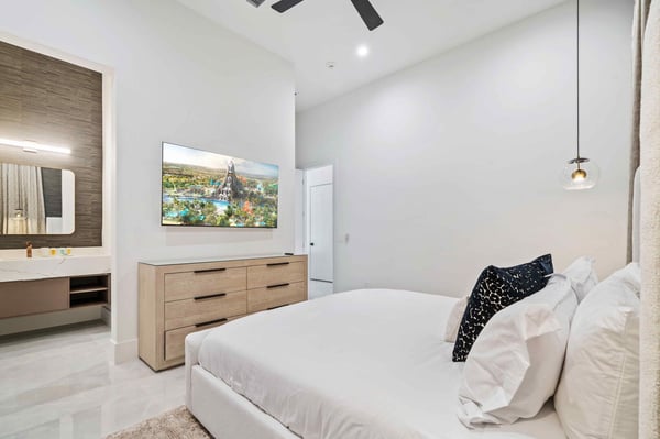 Step into the world of unbridled luxury at Reunion Royale Retreat, a palatial 12,000-square-foot mansion nestled within the prestigious Reunion Resort. This magnificent 11-bedroom oasis, boasting modern and contemporary design, is the epitome of refined opulence. Every inch of this estate has been meticulously curated for guests to indulge in a sublime blend of relaxation and entertainment. The heart of Reunion Royale Retreat is its unparalleled entertainment suite, where an arcade complete with Skee-Ball, NBA Hoops, and a Fast and Furious Tokyo Drift simulator promises boundless fun. Challenge your friends on the high-speed Super Bikes 2x2 or embark on an epic alien hunt in the gripping Armageddon shooter. The arcade is just the beginning. Ascend to the bar lounge loft and immerse yourself in a high-tech golf experience with the Full Swing HD Golf Simulator, where you can practice your swing or relax with a game of pool. For an immersive cinematic experience, slip into the plush 10-seat theatre room, outfitted with cutting-edge audio-visual equipment. Fitness enthusiasts will revel in the state-of-the-art gym, ensuring they can keep up with their workout routines while basking in the lap of luxury. When it's time to unwind, retreat to one of seven king ensuite bedrooms, or explore the two additional rooms filled with multiple beds ranging from queen to full, perfectly accommodating large groups. Children and the young at heart will adore the beach surfer and outdoor camping lodge-themed rooms, creating a whimsical ambiance that’s perfect for slumber parties or adventures in imagination. Reunion Royale Retreat truly shines in its outdoor living space. Picture yourself lounging by the resort-style pool, embraced by the soothing warmth of the Florida sun. Dive into the refreshing water or savour the plush comfort of the in-pool loungers and daybed. As the sun sets, the outdoor cabana transforms into a sophisticated haven. Motorized screens double as a movie screen, while built-in heaters warm you beneath the night sky. Three outdoor fireplaces add a flickering glow, creating an enchanting ambiance that lingers long into the evening. For those with a culinary inclination, the estate features a summer kitchen complete with a 54" Wolf Grill, where you can create delectable meals worthy of a five-star restaurant. Indoors, you'll find a 36" Sub-Zero refrigerator, a 36" Sub-Zero freezer, and a 60" Wolf range with two ovens. Additional Wolf wall ovens, dual dishwashers, and ice makers ensure that you have everything you need to prepare gourmet feasts effortlessly. Reunion Royale Retreat leaves no luxury unmet. From the high-end finishings to the impeccable attention to detail, no expense was spared in creating this paradise for up to 30 guests. This magnificent estate redefines the concept of an extraordinary vacation rental, offering you an unparalleled experience that you'll treasure for a lifetime. Indulge in the ultimate luxury retreat where your every desire is fulfilled.