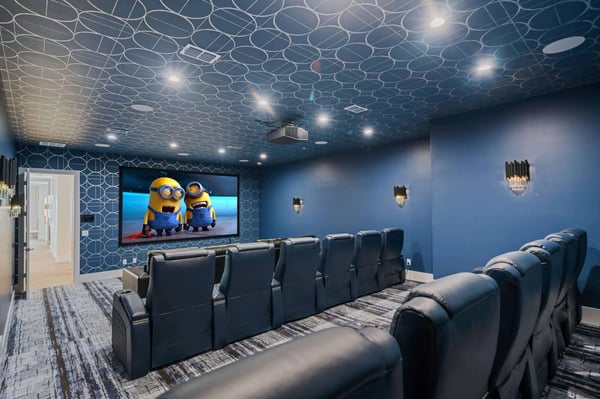 Discover the epitome of tropical luxury at Seaside Serenity Lodge, a stunning custom-built mansion designed for those who seek an unparalleled vacation experience. Located on the 16th hole of the prestigious Nicklaus signature golf course, this brand-new, meticulously crafted estate offers sweeping views of serene water features, providing the perfect blend of elegance, comfort, and sophistication. Every inch of this breathtaking property has been thoughtfully designed to cater to your every need, from the moment you step through the grand double-height entry. Expansive open living spaces are bathed in natural light, flowing seamlessly onto a large pool deck surrounded by lush tropical landscaping. Whether you're entertaining guests in the formal dining room, unwinding in the spacious lounge areas, or enjoying a private cocktail in the custom-designed loft, Seaside Serenity Lodge offers endless options for relaxation and recreation. The main floor features four beautifully appointed bedrooms, each with an en-suite bathroom, ensuring privacy and luxury for every guest. The primary suite, with its poolside views, is a true sanctuary, while the commercial-grade arcade room and fully equipped gym provide entertainment and relaxation for all ages. Additional amenities include a dedicated service kitchen, separate laundry facilities, and a powder bath. Upstairs, the expansive loft area serves as an entertainment hub, with a custom bar, comfortable seating, multiple TVs, a pool table, arcade games, and a spacious balcony overlooking the golf course. The upper level also includes three king suites, each with private balconies, as well as a state-of-the-art movie room featuring 12 reclining seats and a full complement of lounge chairs for the ultimate cinematic experience. For families, Seaside Serenity Lodge offers one of the most extraordinary themed kids’ areas in Reunion Resort. The enchanting Mermaid Room and adventurous Pirates' Quarters feature full-sized bunk beds, a secret fort, and a pirate ship with interactive play areas, foam pits, and game consoles, making it a place where imaginations run wild. Your little adventurers will delight in the treasure hunts, pirate costumes, and hidden treasures scattered throughout the property. Step outside and immerse yourself in the tropics with a spacious covered lanai offering comfortable seating, a large outdoor TV, al fresco dining, and a fully equipped summer kitchen. Whether you’re enjoying a cocktail at the tropical bar, cooling off under the misting system, or simply soaking up the sun by the pool, every moment here is designed to create lasting memories. As the sun sets, gather around the fire pit or enjoy a movie under the stars with a drop-down cinema screen. At Seaside Serenity Lodge, every detail has been carefully crafted to provide a luxury vacation experience like no other. Whether you seek adventure, relaxation, or a blend of both, this tropical oasis is your ultimate destination. Come live the dream—your unforgettable getaway awaits.