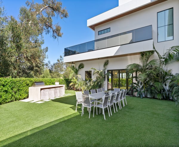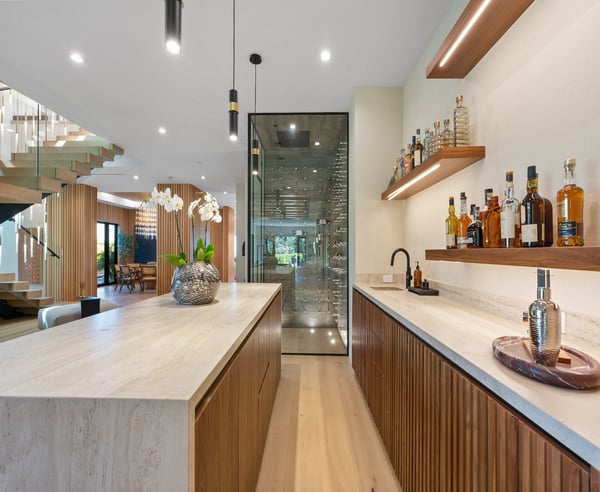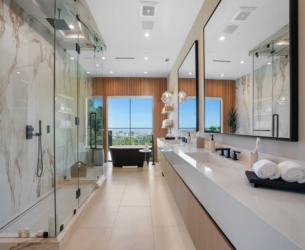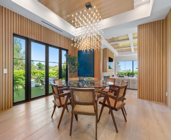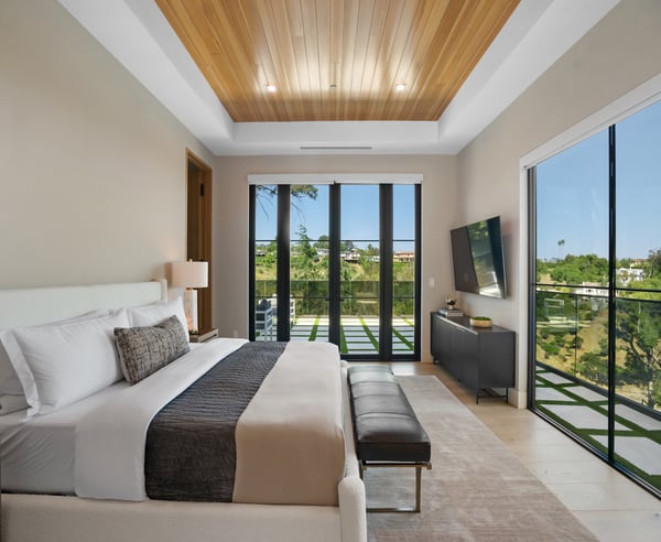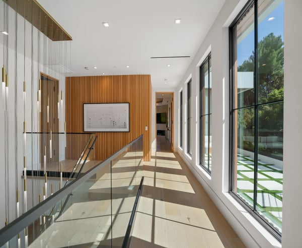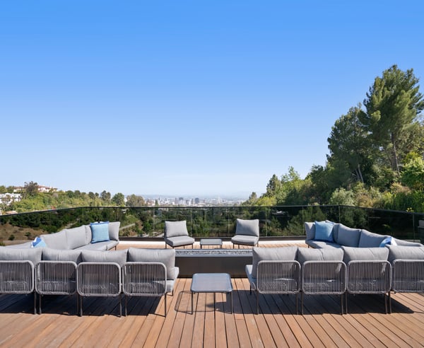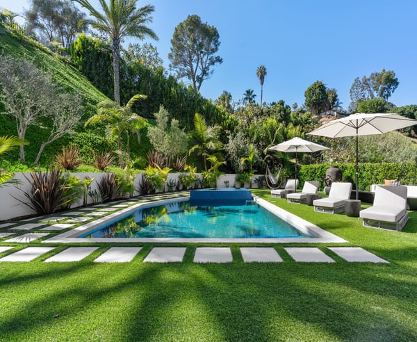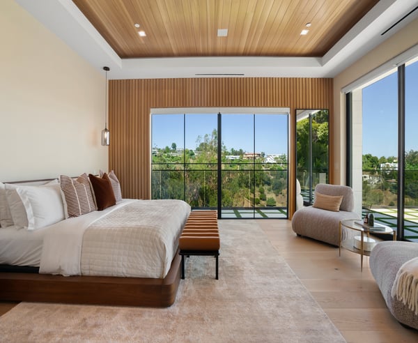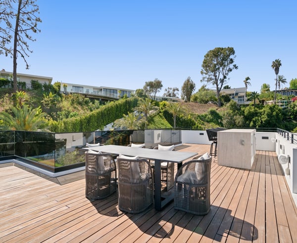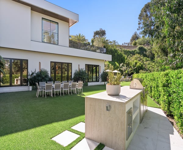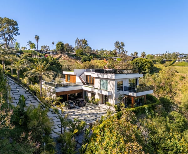 Tucked behind a 300-foot palm-lined driveway in the hills of Bel-Air, Linda Flora Villa is a private architectural retreat offering breathtaking city, ocean, and canyon views. Designed by Ramtin Ray Nosrati, this 7,200 sq ft estate sits on nearly two acres and pairs natural elements with modern luxury in every detail. The 5-bedroom, 5.5 bathroom residence features a dramatic two-story living wall, floor-to-ceiling windows, and expansive living spaces that flow effortlessly into the outdoors. The chef’s kitchen includes dual islands, top-tier appliances, and designer finishes, while the entertainment lounge, bar area, and rooftop deck with built-in BBQ create the perfect setting for elevated living and hosting. Outdoors, over 6,400 sq ft of deck space surrounds a resort-style pool and spa, lush flat lawn, and multiple fire pits. A custom 10-car garage, smart home systems, wine room, and boutique-inspired primary suite complete the offering. Just minutes from Beverly Hills and the Westside, Linda Flora Villa is a rare blend of privacy, design, and lifestyle.